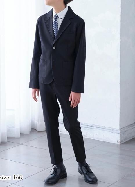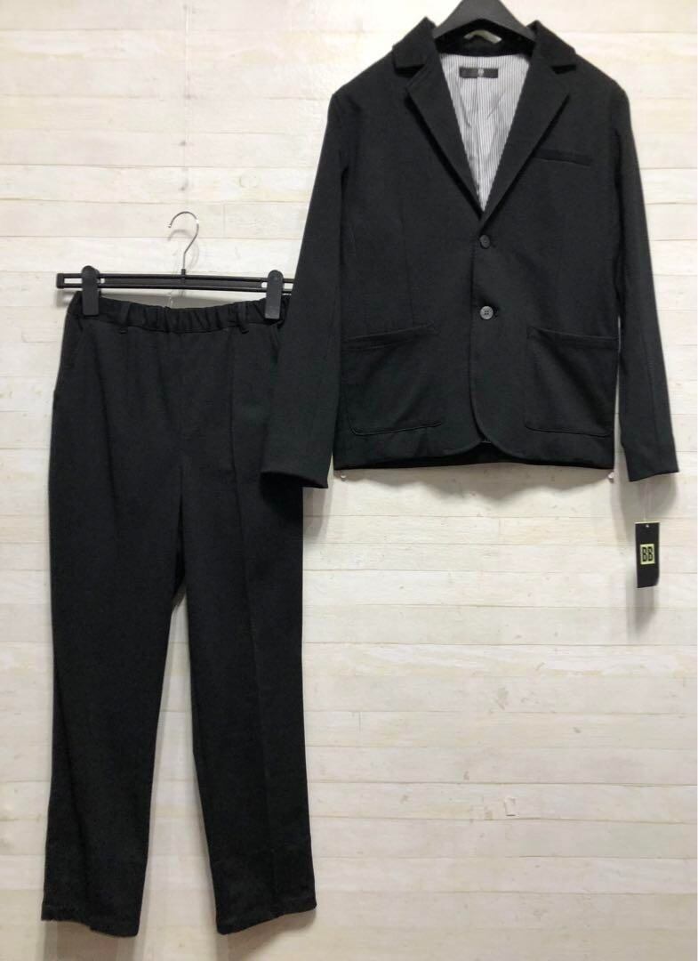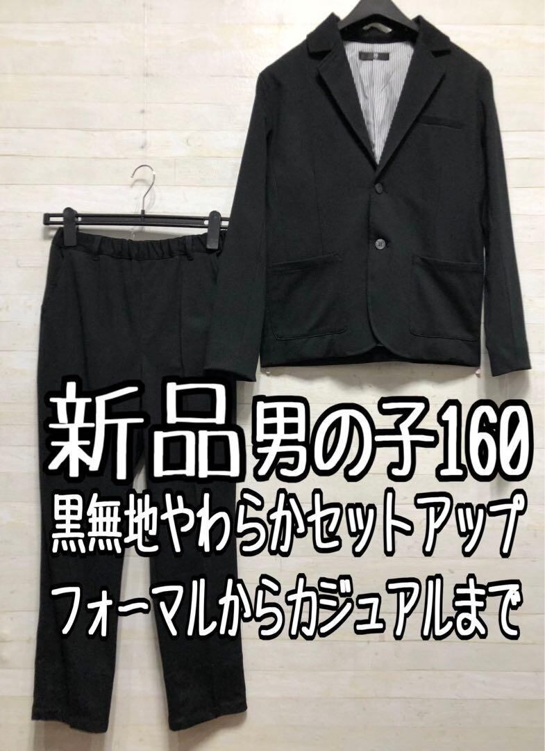 新品☆男の子160黒系無地♪スーツ上下セット♪カットソー地♪入学・卒業◯D277