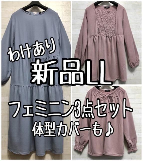 新品☆LLピンク×ブルー系♪体型スッキリ見え♪フェミニン3点セット〇B581