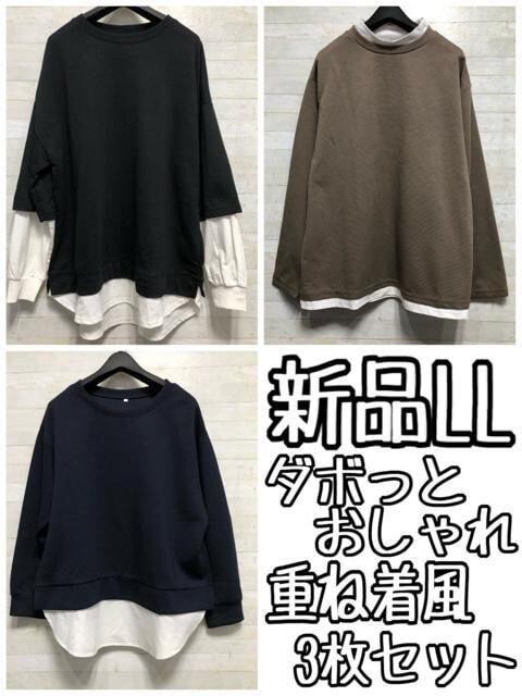 新品☆LL重ね着風プルオーバー3枚セット♪なめらか素材も〇B579