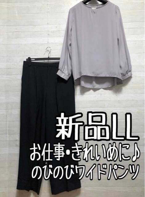 新品☆LLお仕事・きれいめに♪ブラウス&ワイドパンツ〇B573