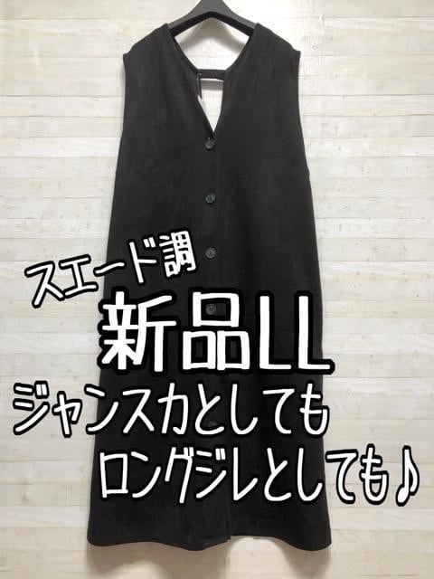 新品☆LL黒系♪着方色々♪スウェード調おしゃれジャンスカ〇B587