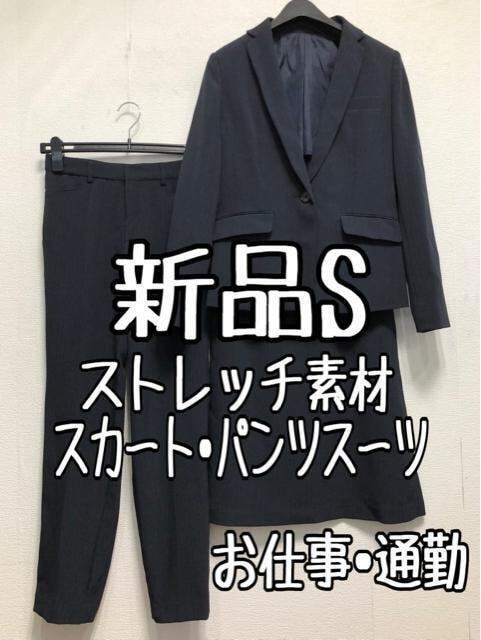 新品☆S紺系ストライプ柄♪スカート・パンツスーツお仕事・通勤☆u917