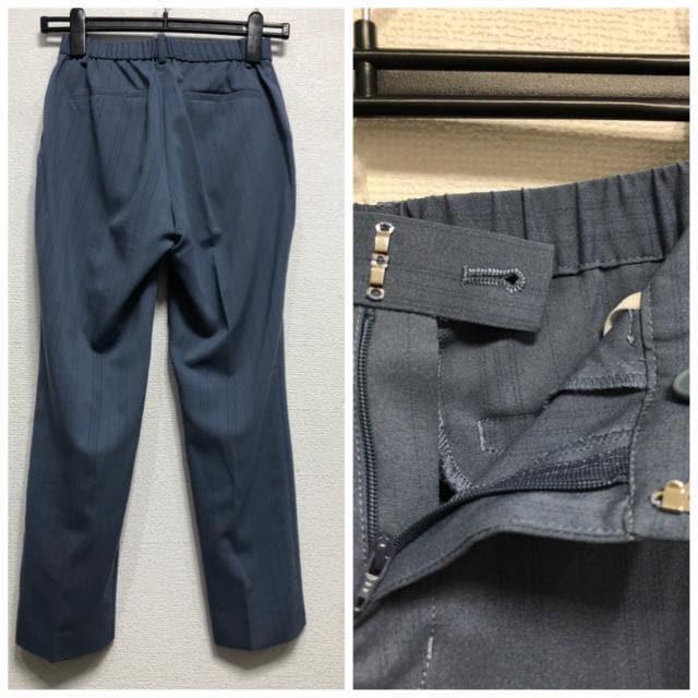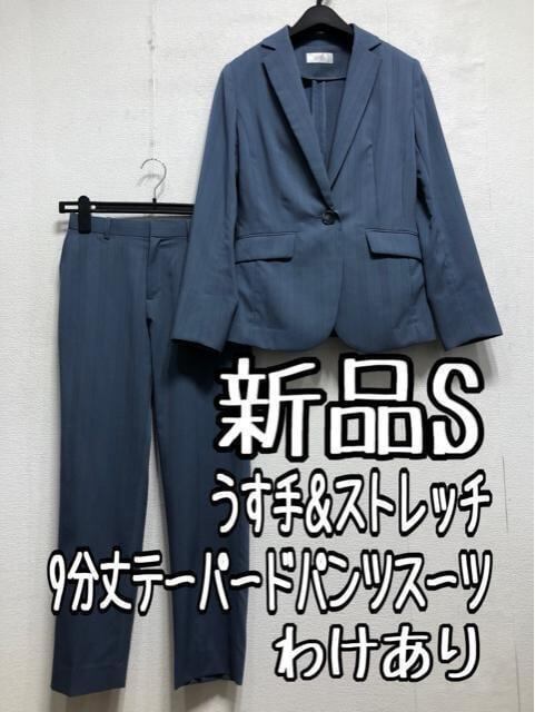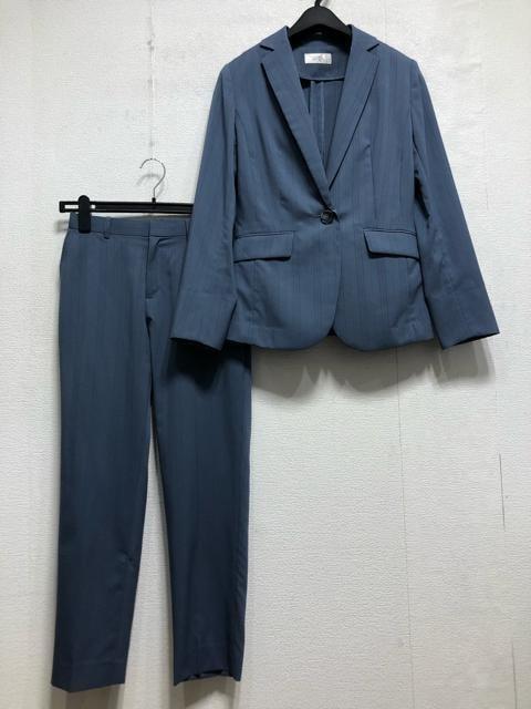 新品☆Sブルー系ストライプ柄うす手ストレッチ素材パンツスーツ通勤お仕事☆r846