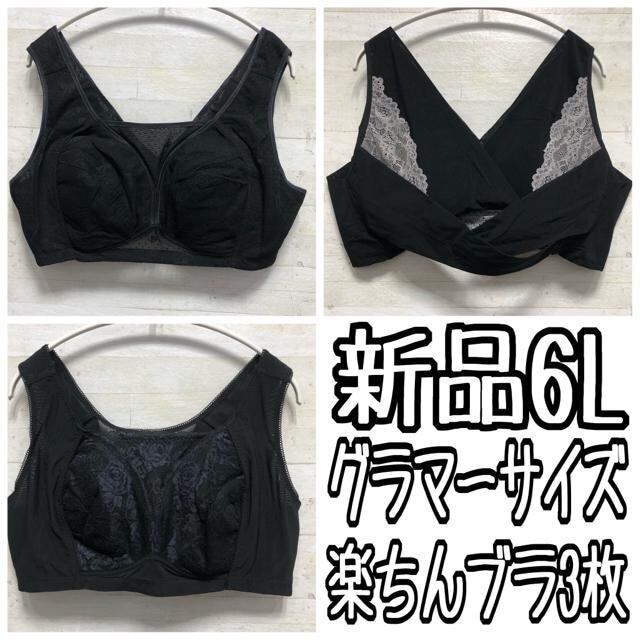 新品☆6Lグラマーサイズ♪ノンワイヤー楽ちんブラ3枚セット〇B625
