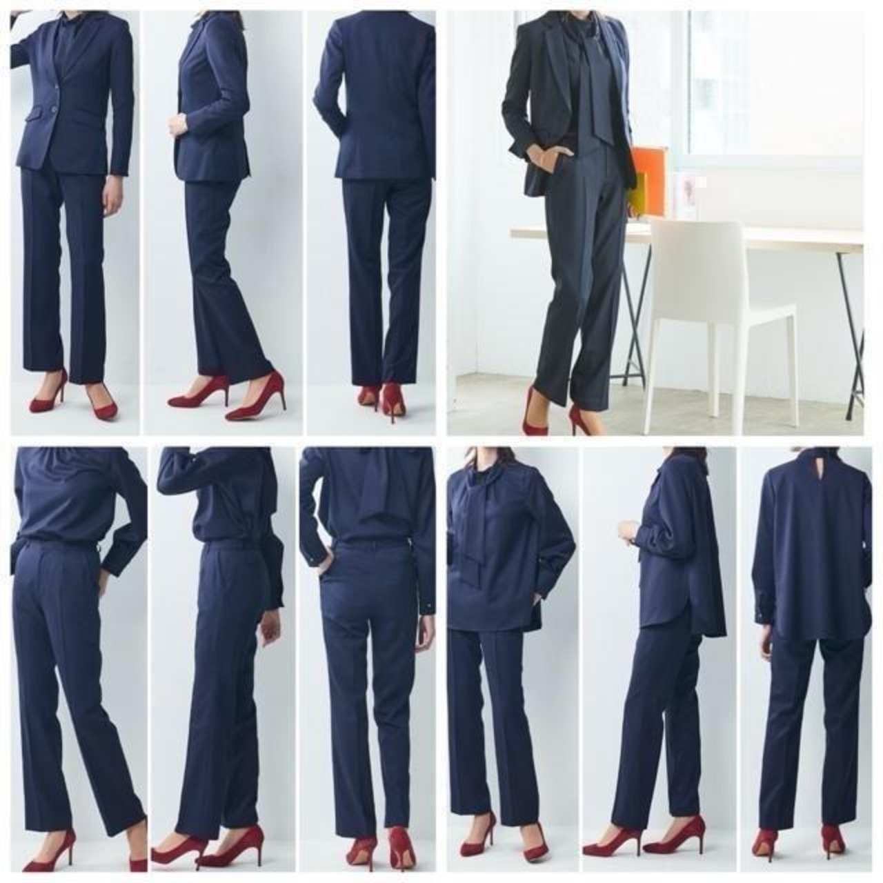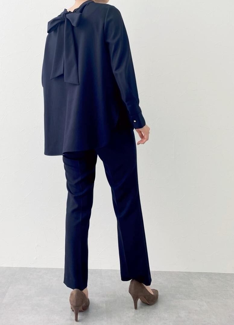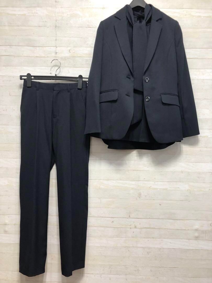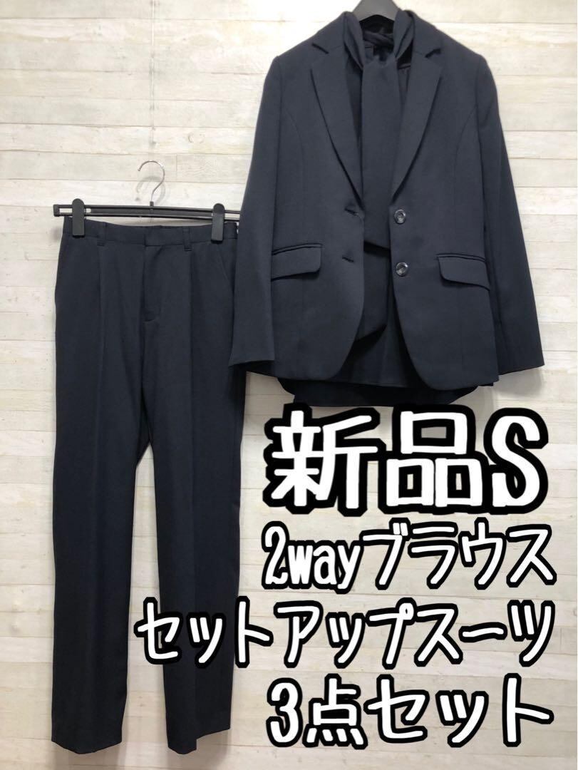 新品☆S♪紺系♪衿リボンタイおしゃれセットアップパンツスーツ♪3点〇G111