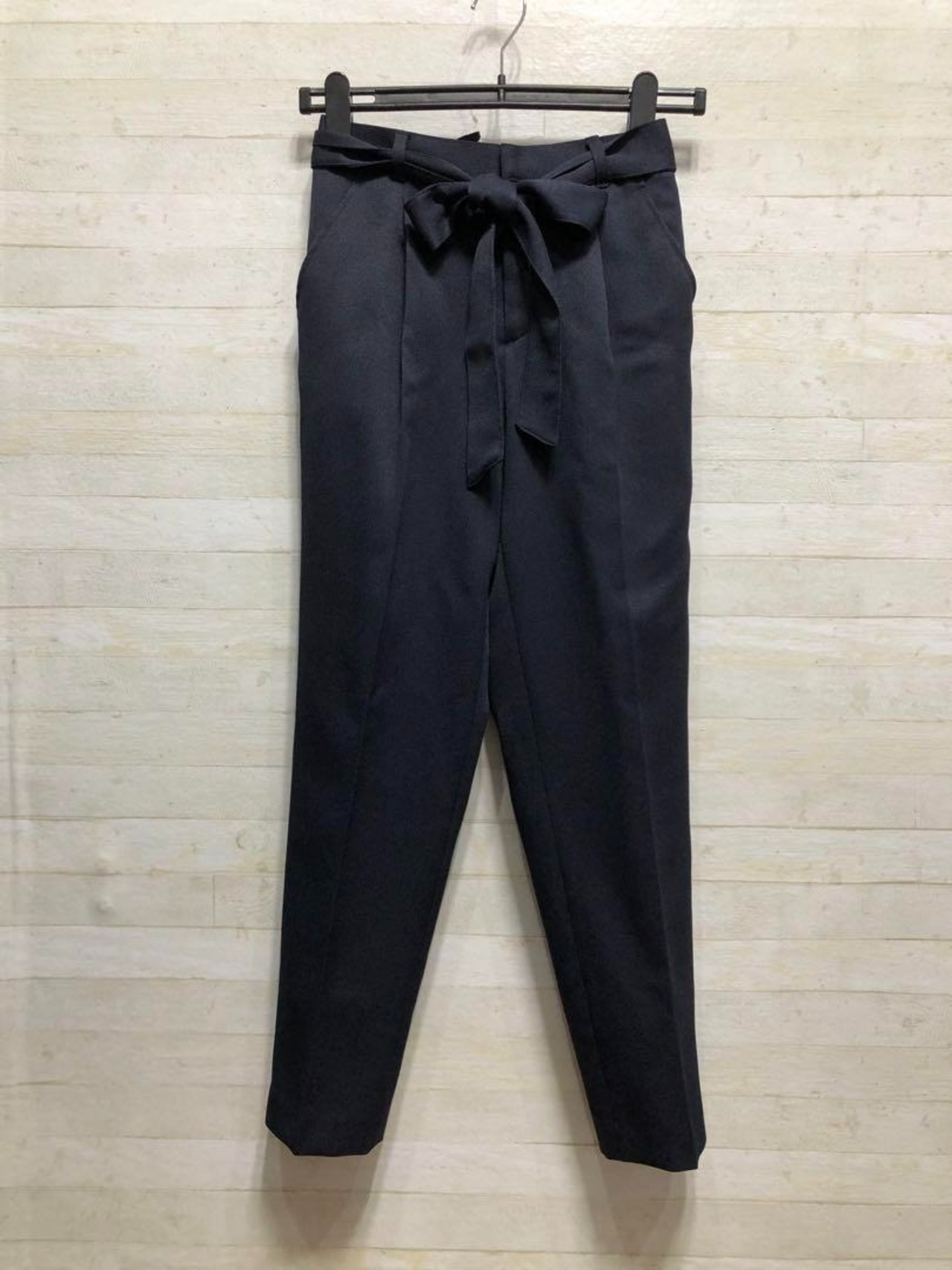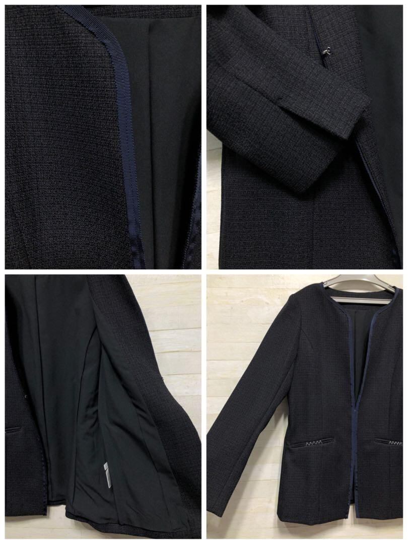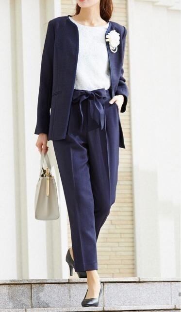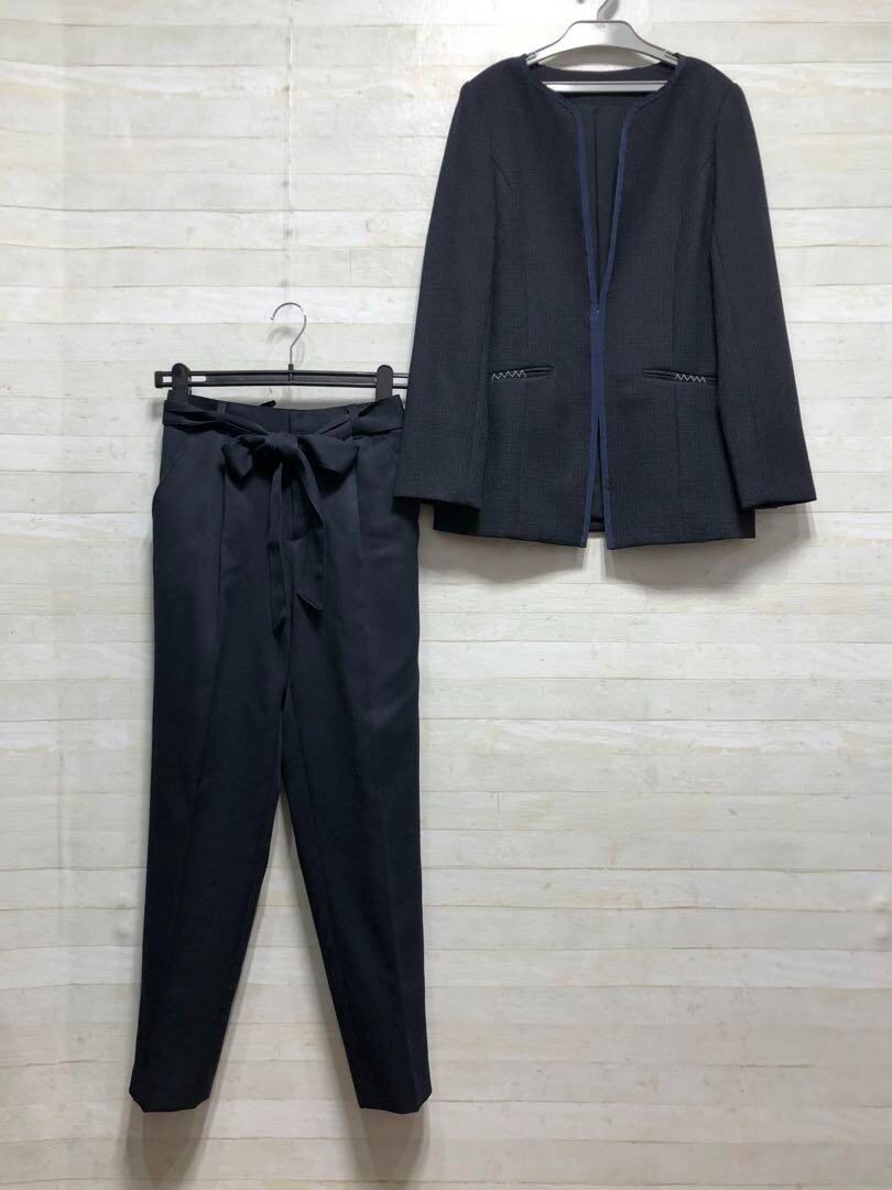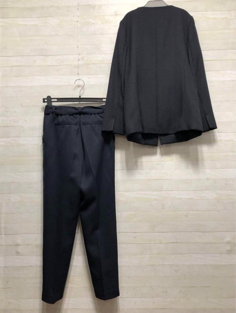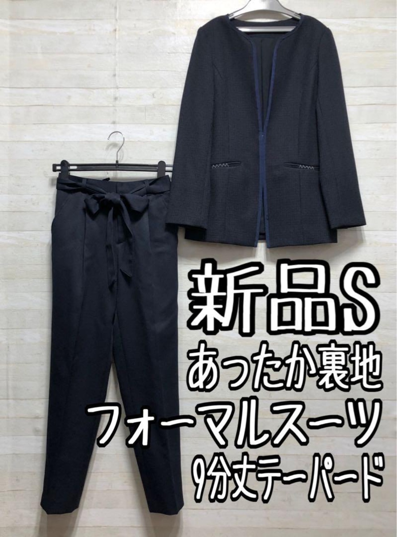 新品☆S♪紺系♪蓄熱保温♪ノーカラーフォーマルパンツスーツ〇D188