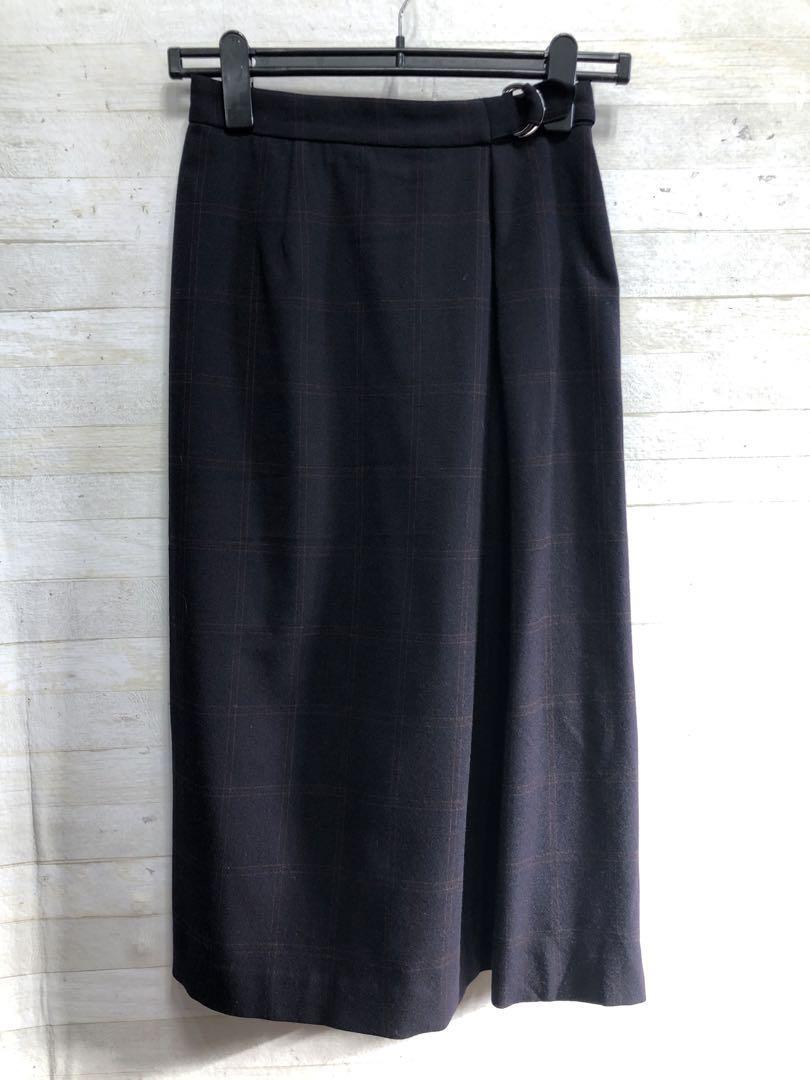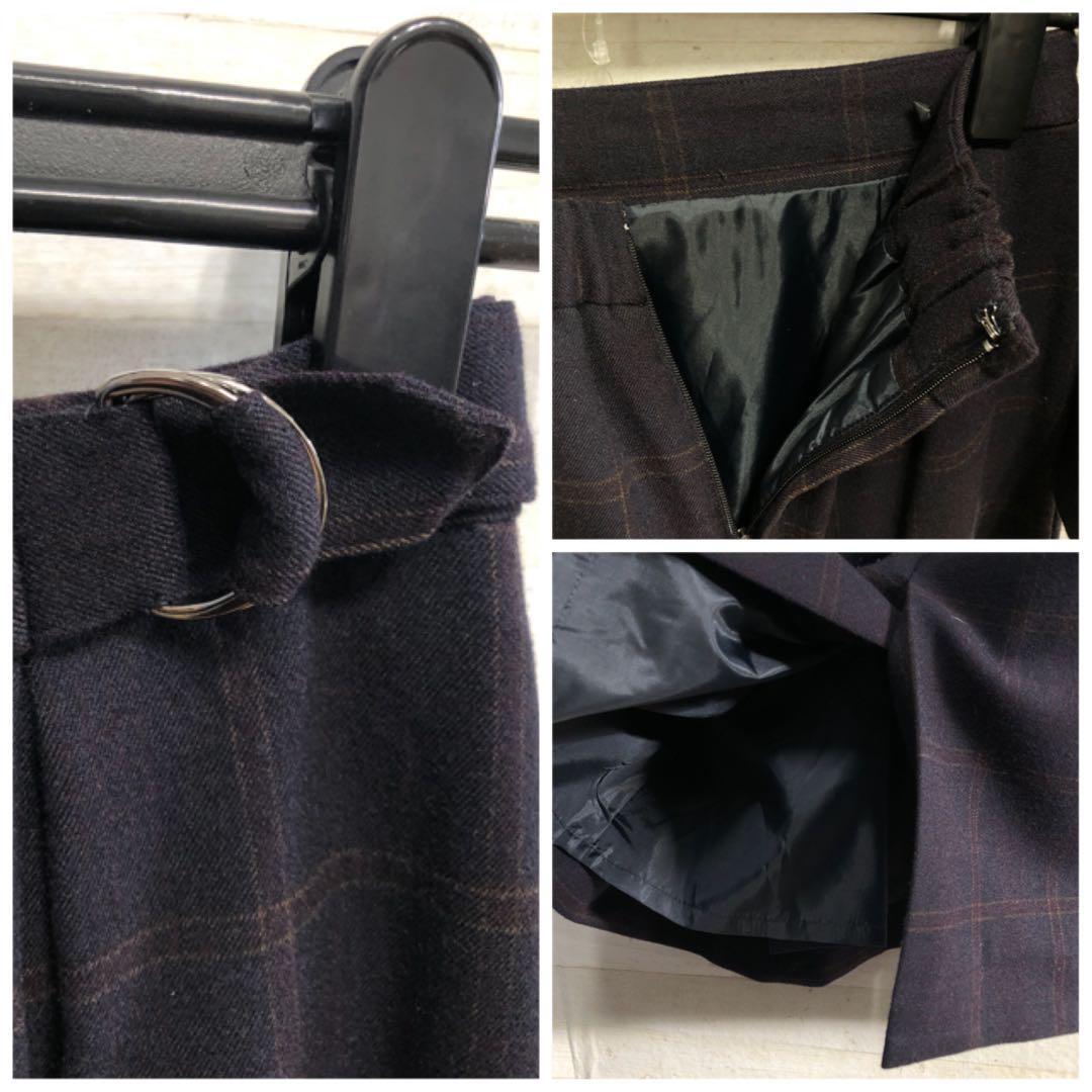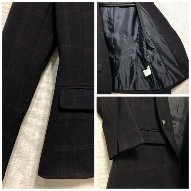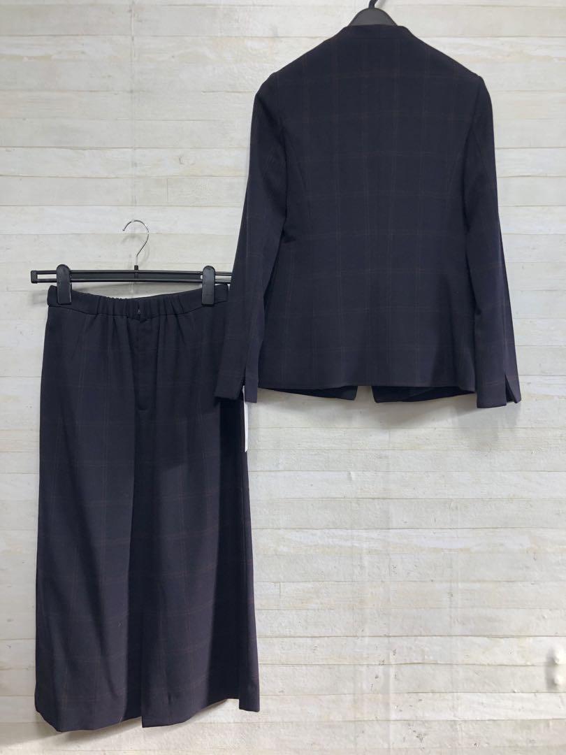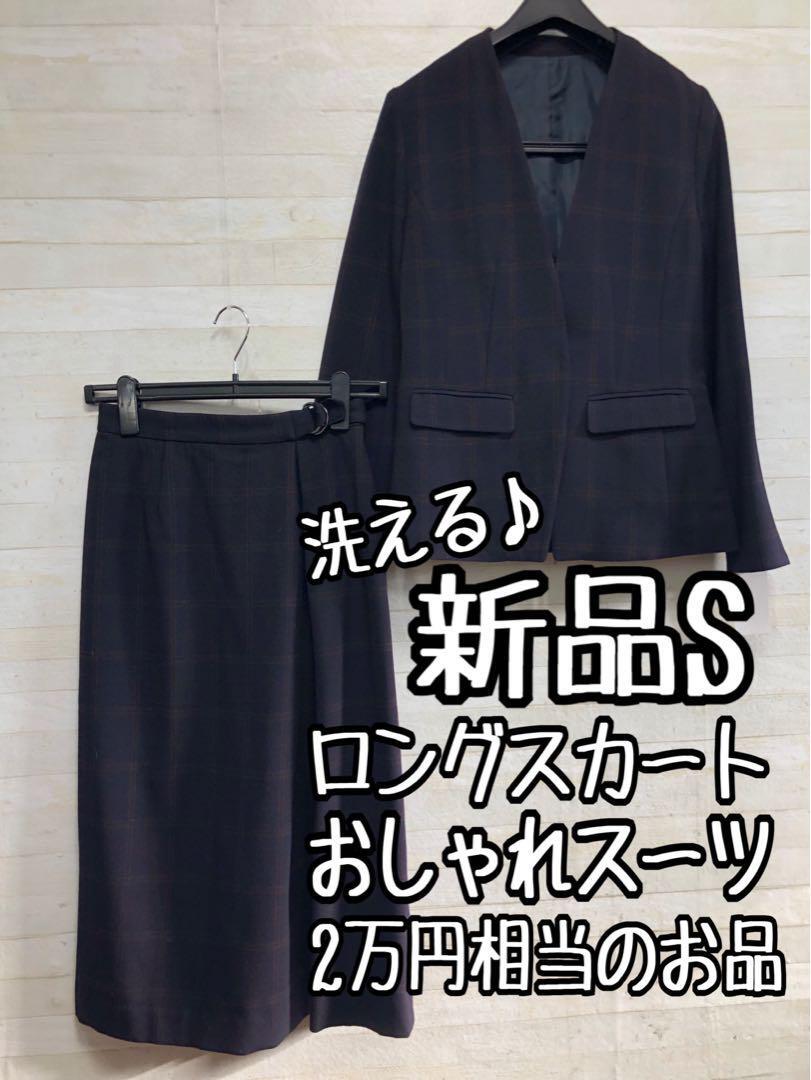 新品☆S紺系♪チェック柄♪ウール調ノーカラースカートスーツ♪2万円相当〇G440