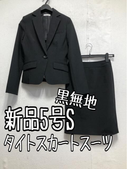 新品☆5号S♪黒系無地♪タイトスカートスーツ♪お仕事・通勤☆b907
