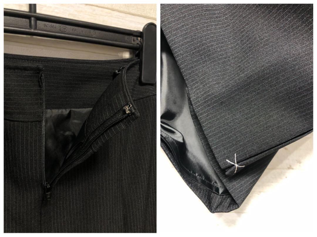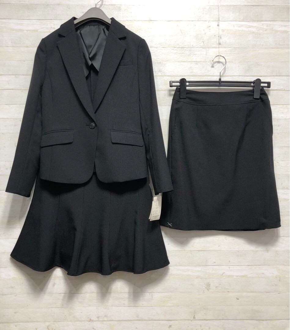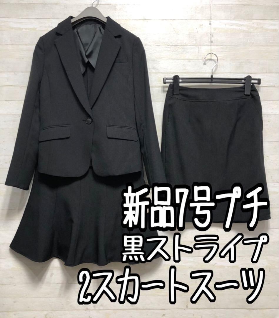 新品☆7号プチS♪黒系×ストライプ柄♪スカートスーツ♪スカート2種類付〇G155