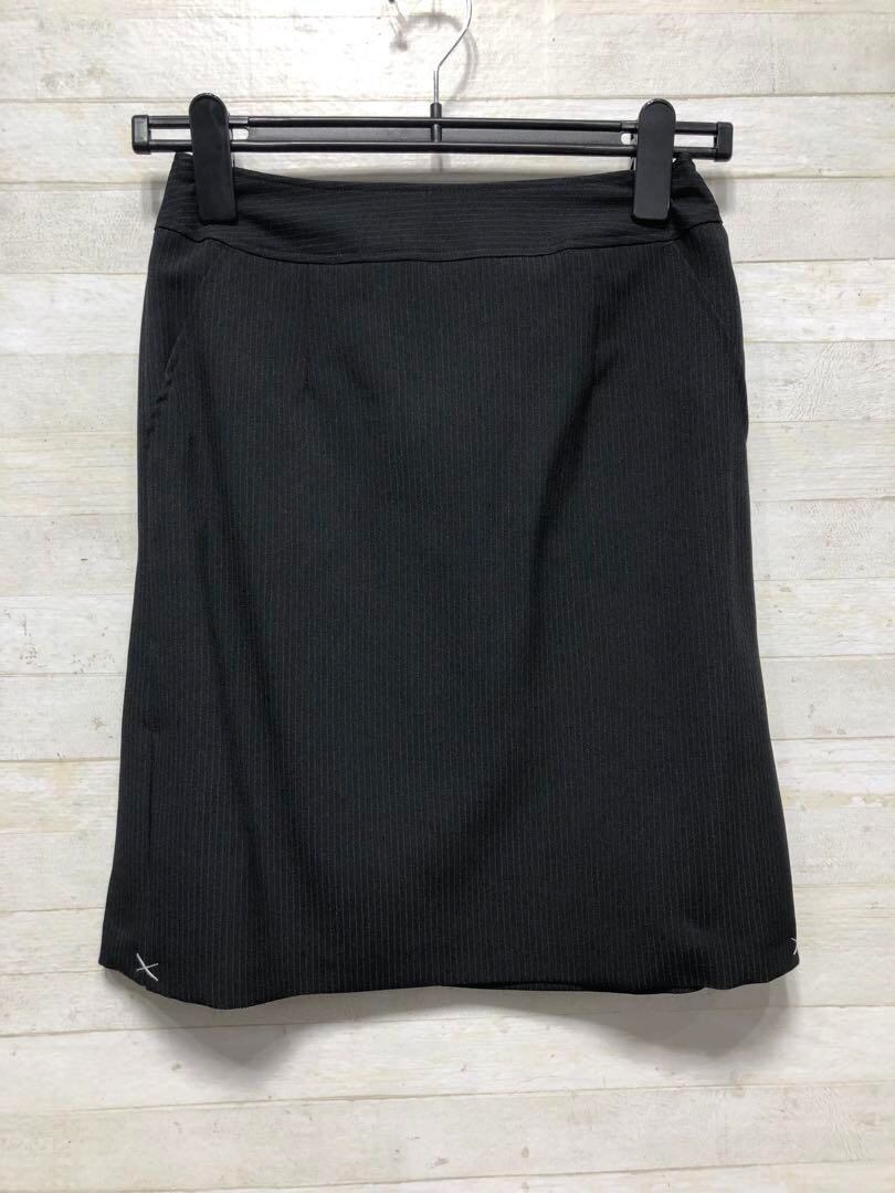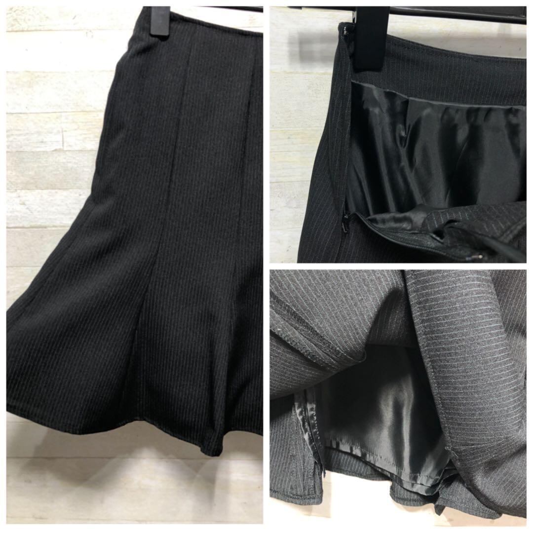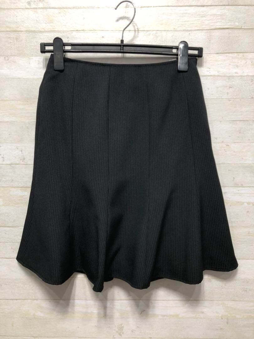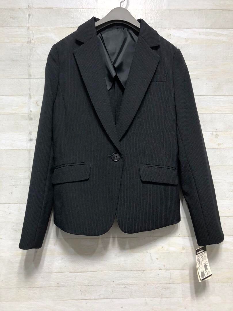 新品☆7号プチS♪黒系×ストライプ柄♪スカートスーツ♪スカート2種類付〇G155