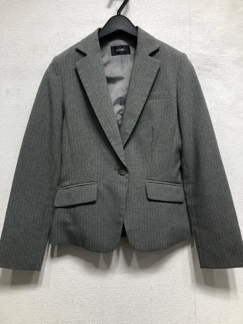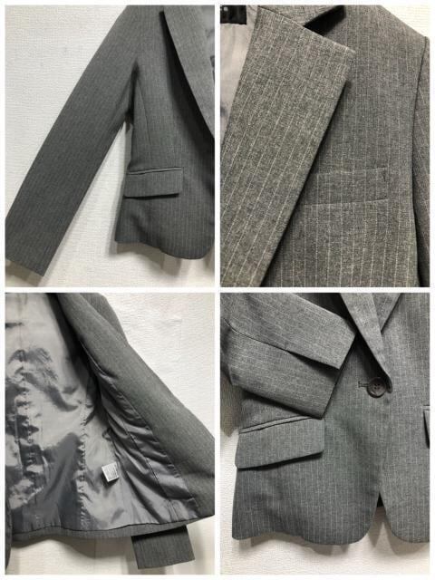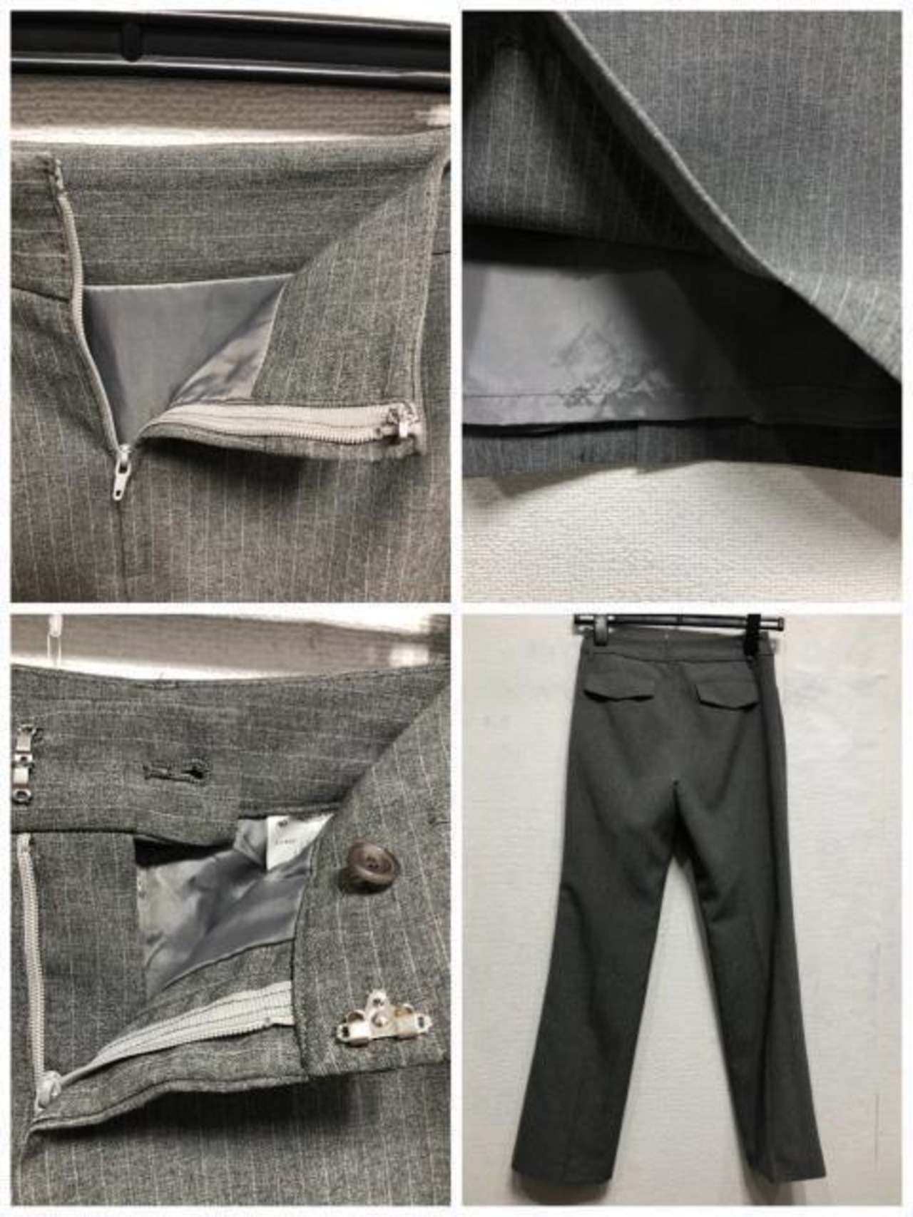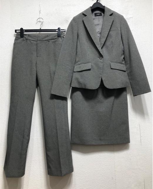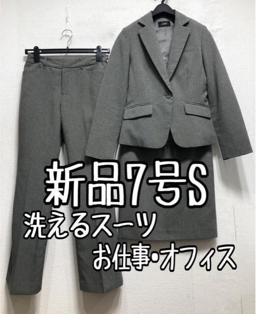 新品☆7号S♪グレー系ストライプ♪パンツ・スカート付スーツ3点セット☆r843