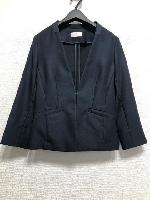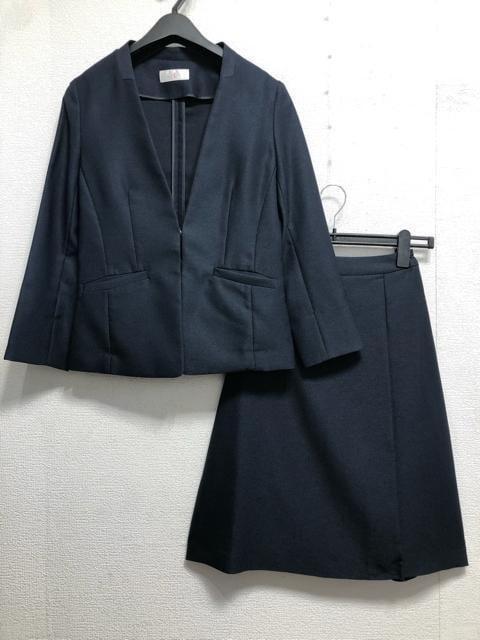 新品☆7号S紺系♪うす手ラップ風スカートスーツ♪お仕事・通勤☆b328