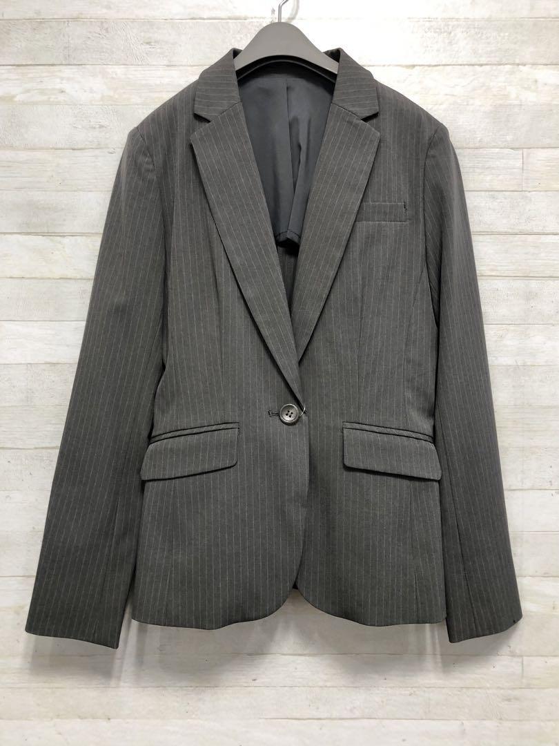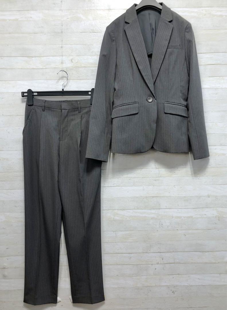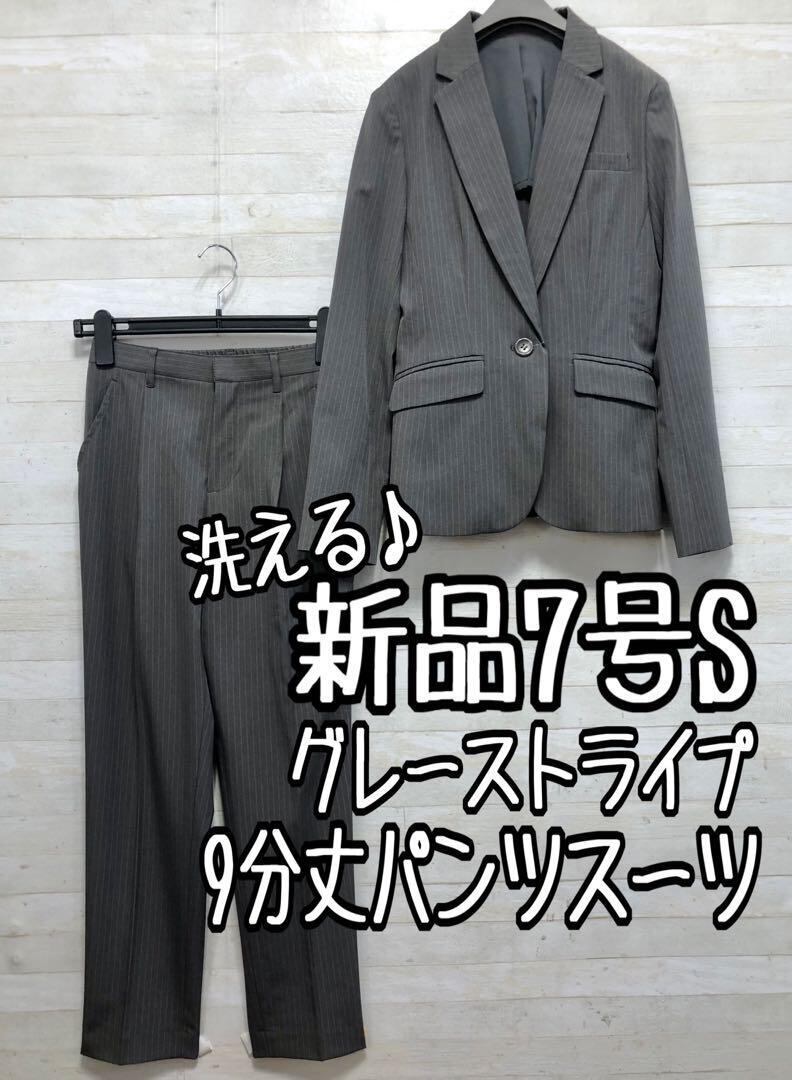 新品☆7号S♪グレー系×ストライプ♪オールシーズンパンツスーツ◯G368