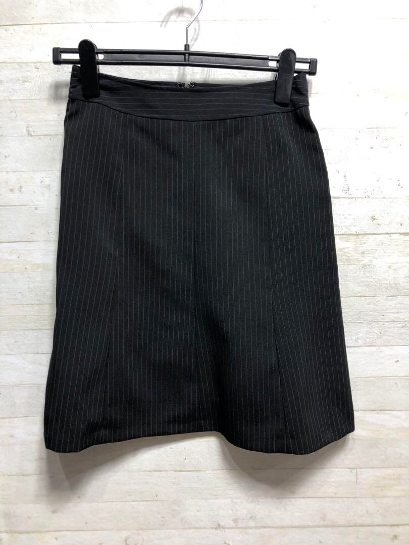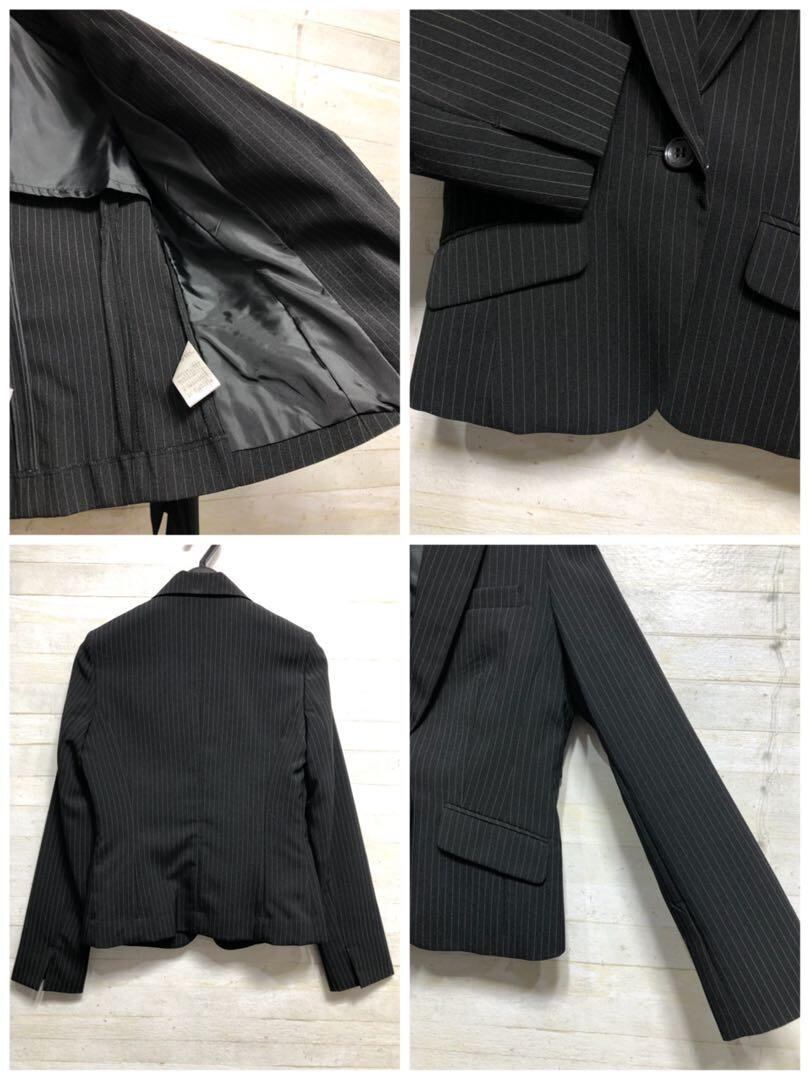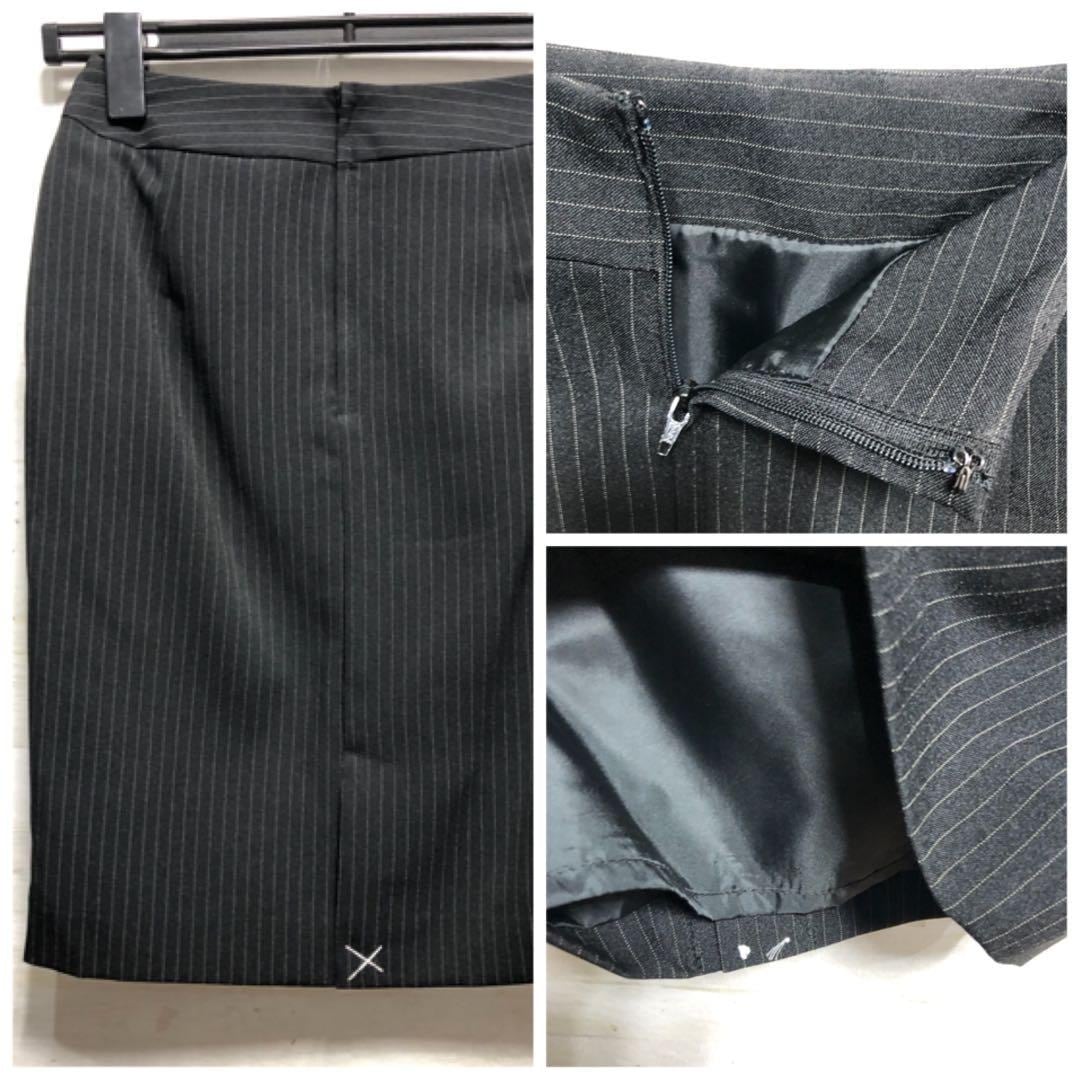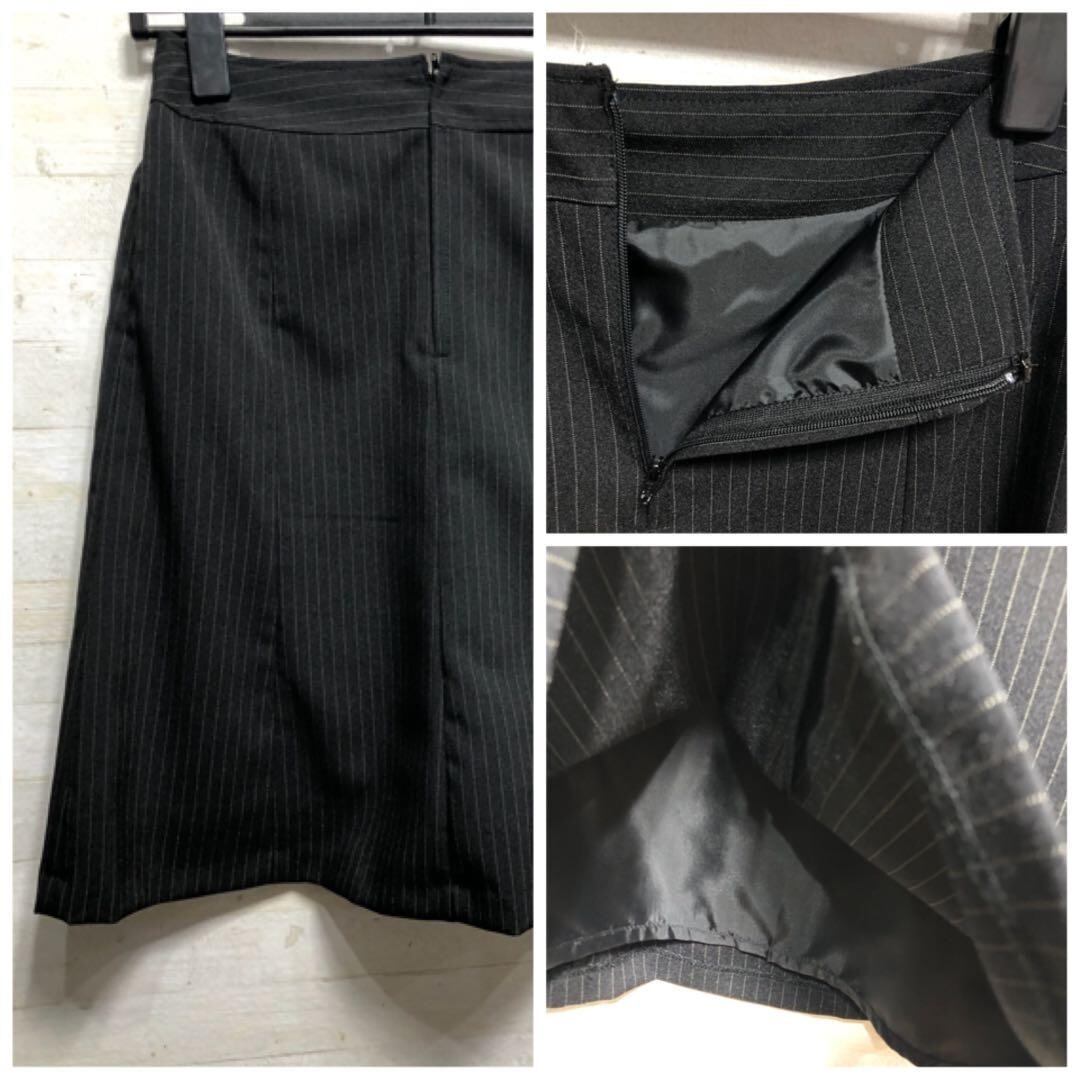 新品☆7号♪黒系×ストライプ柄のスカートスーツセット♪スカート2種類付〇D332