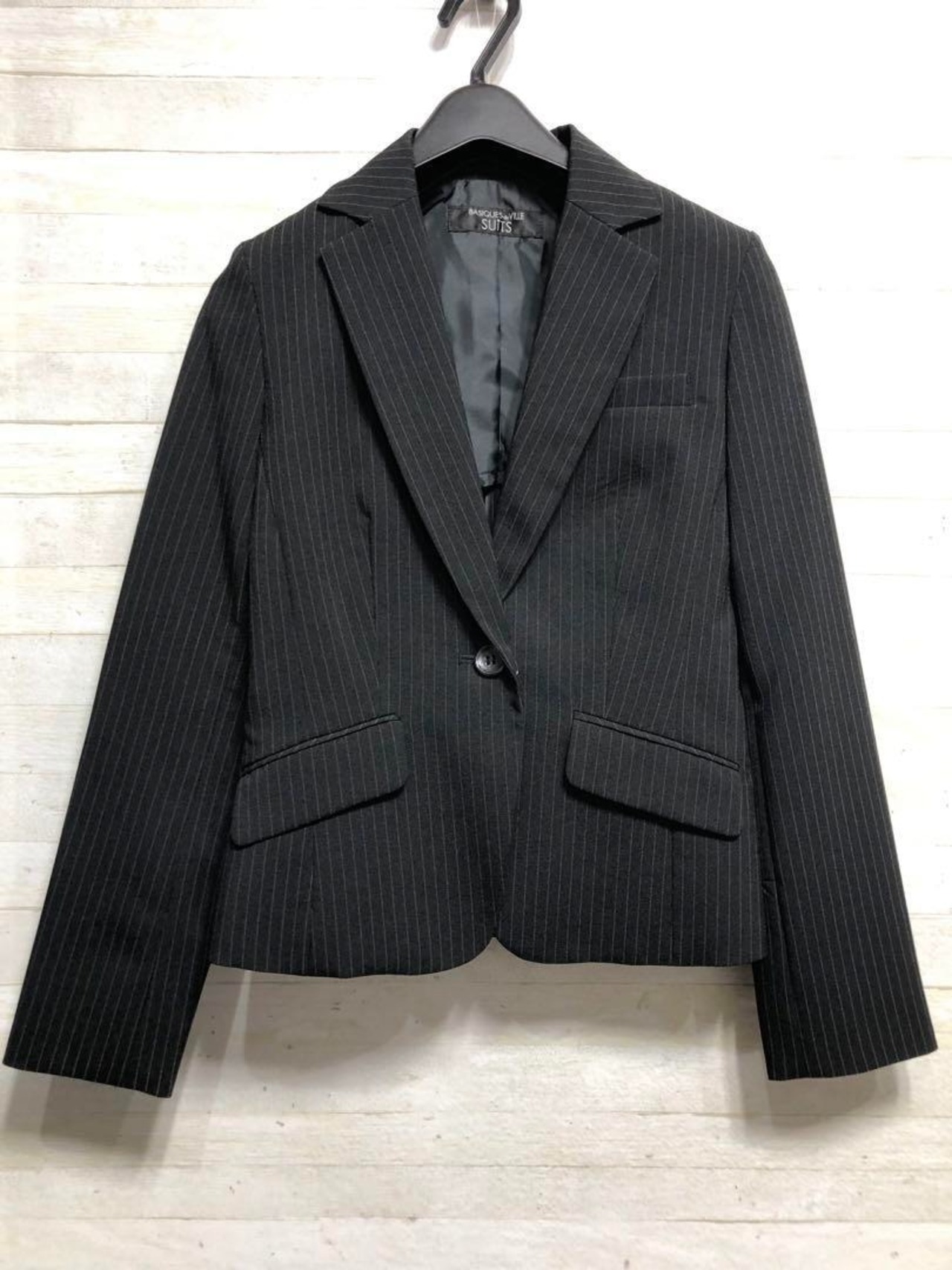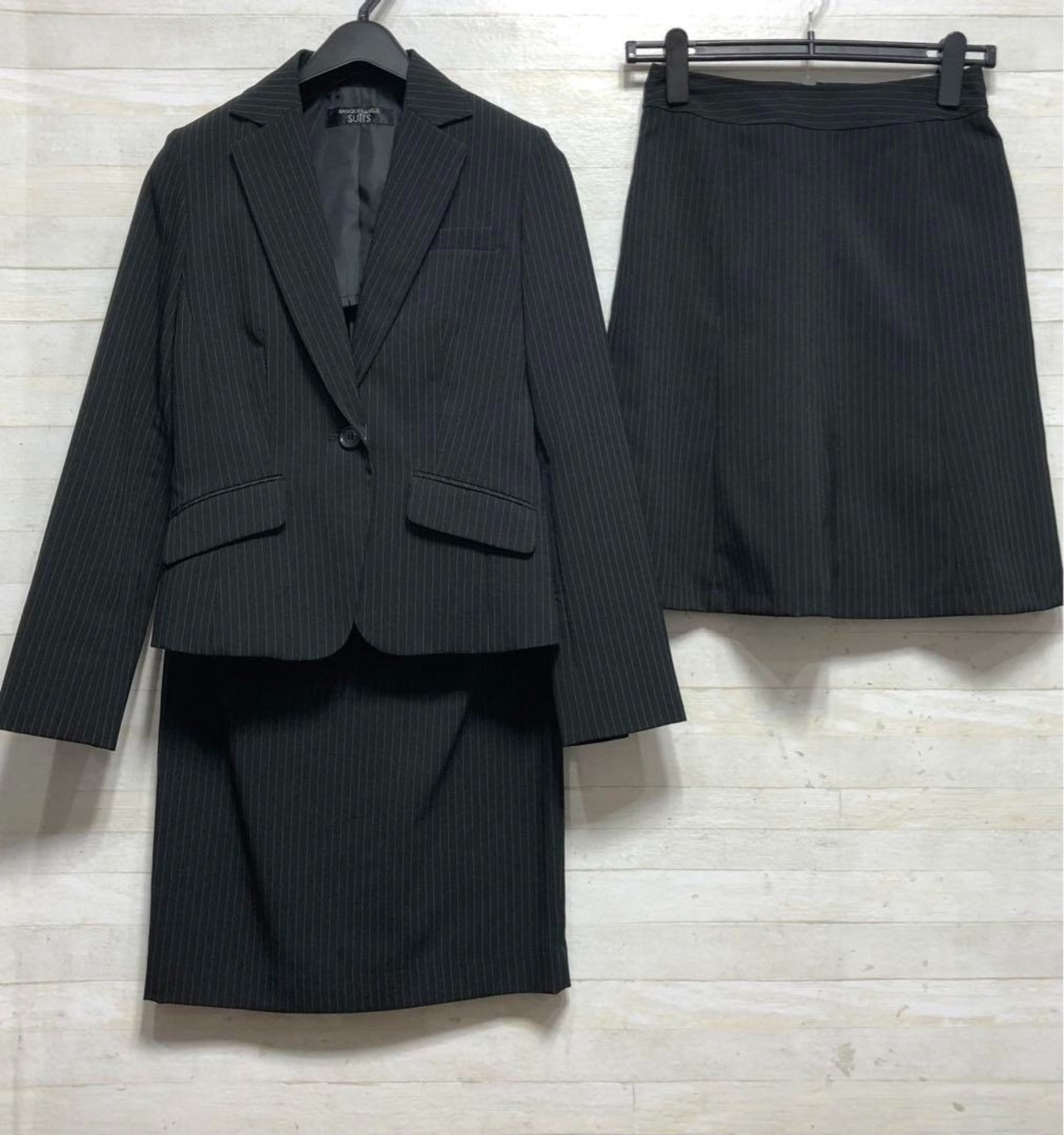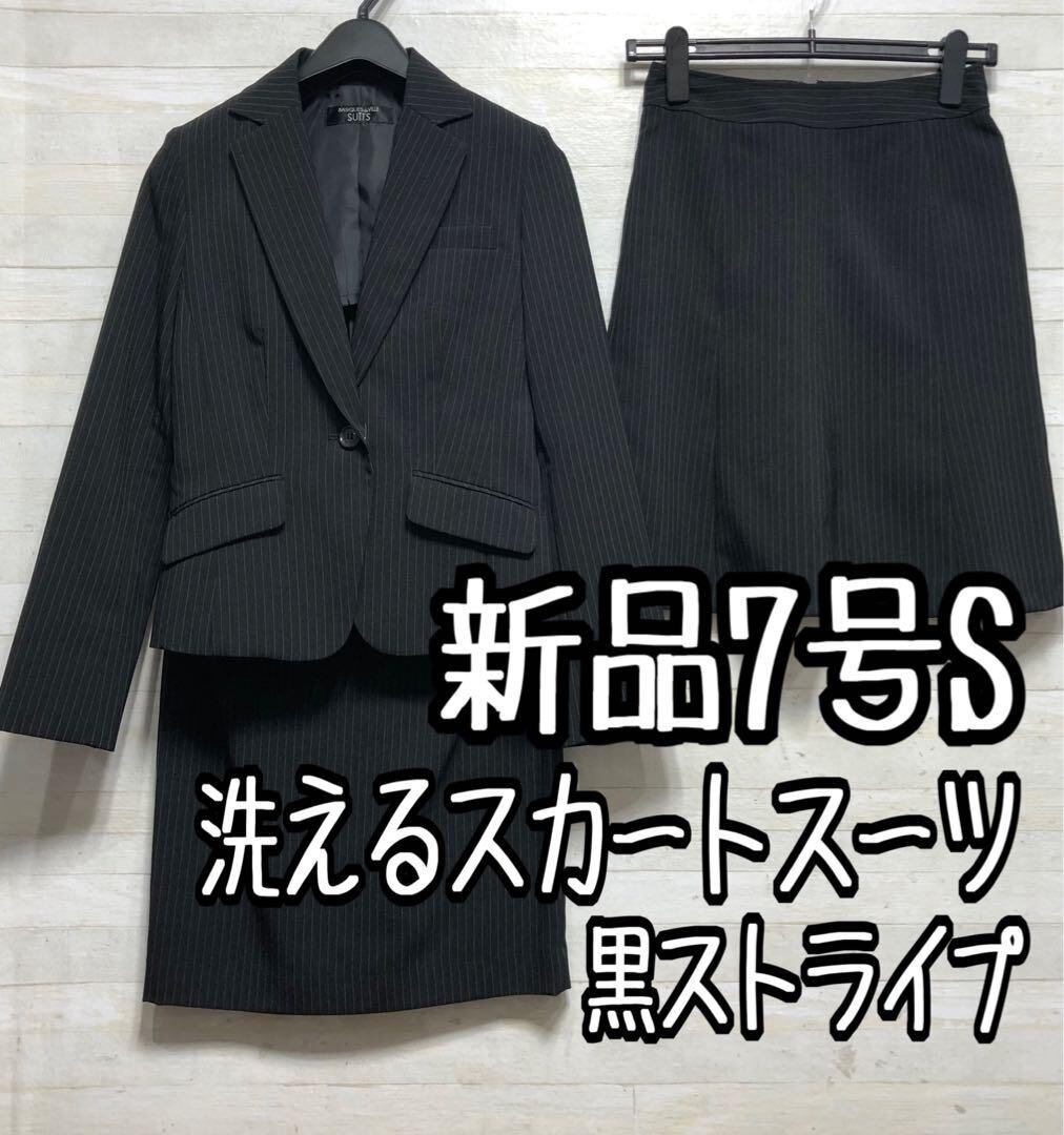 新品☆7号♪黒系×ストライプ柄のスカートスーツセット♪スカート2種類付〇D332