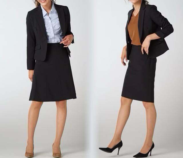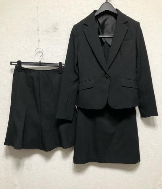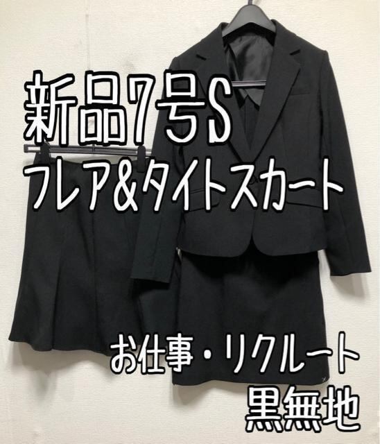 新品☆7号S♪黒系無地♪2スカートスーツ♪フレア&タイト♪お仕事☆u908