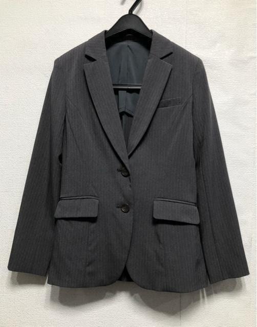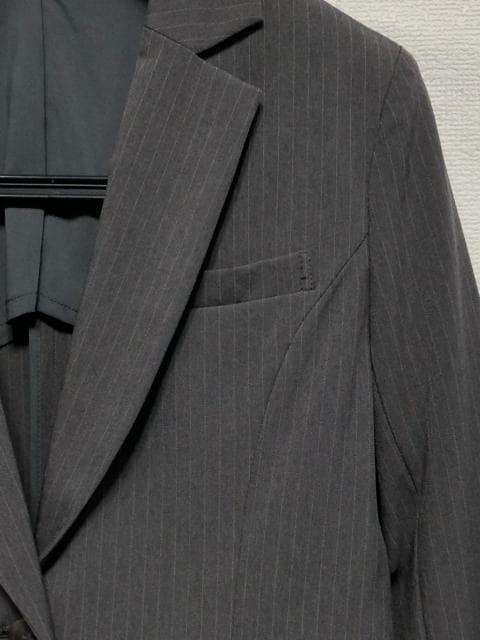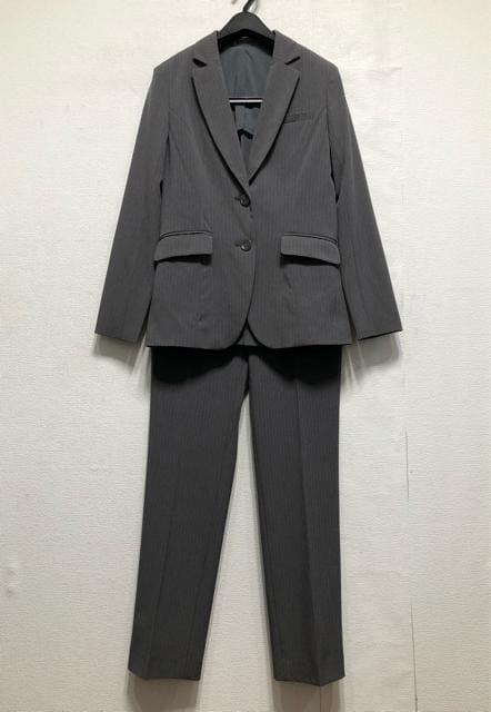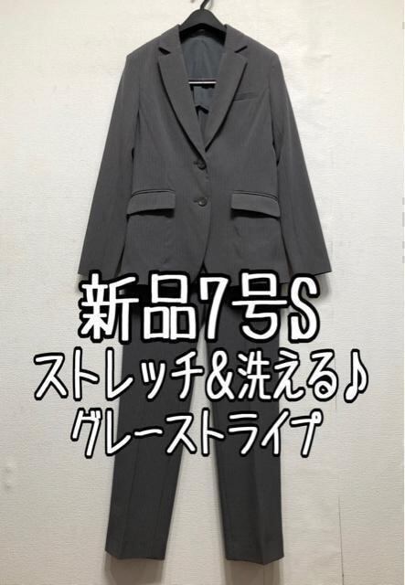 新品☆7号Sグレー系ストライプ柄♪ストレッチ素材ストレートパンツスーツ☆r397