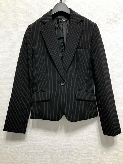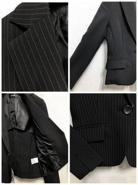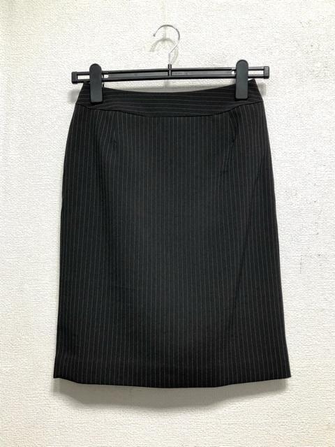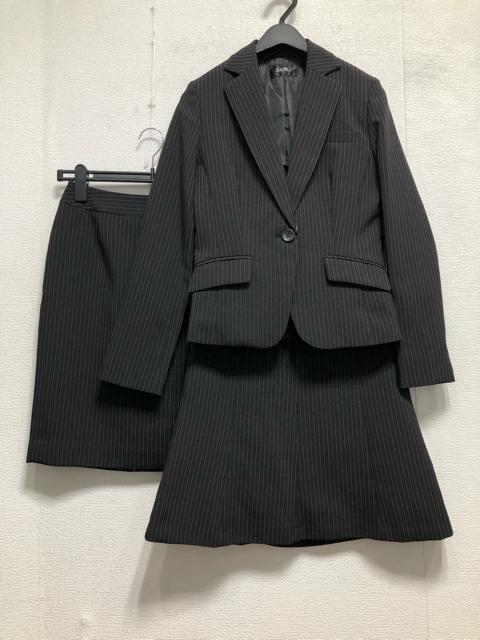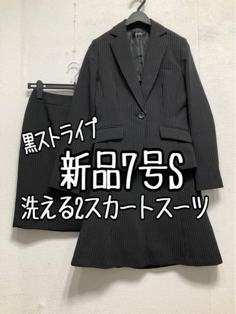 新品☆7号S黒系ストライプ♪タイト&フレアスカートスーツ♪お仕事・通勤☆r656