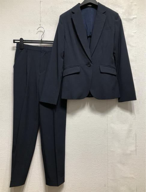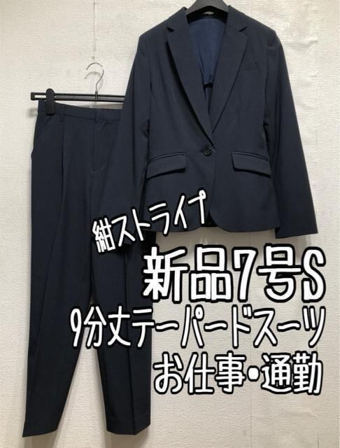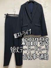 新品☆7号S紺系♪ストレッチ9分丈テーパードパンツスーツ♪お仕事・通勤☆b406