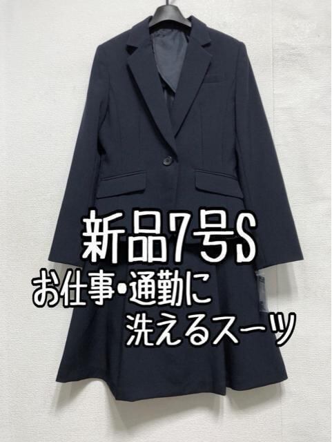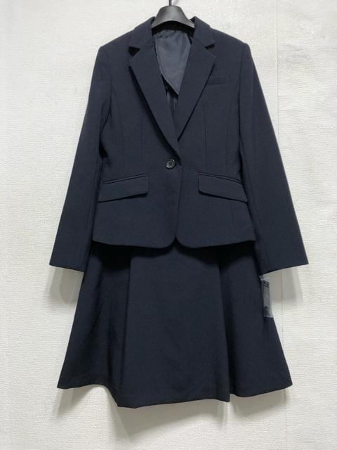 新品☆7号S紺系♪洗えるスカートスーツ♪タックフレアお仕事オフィス☆a432