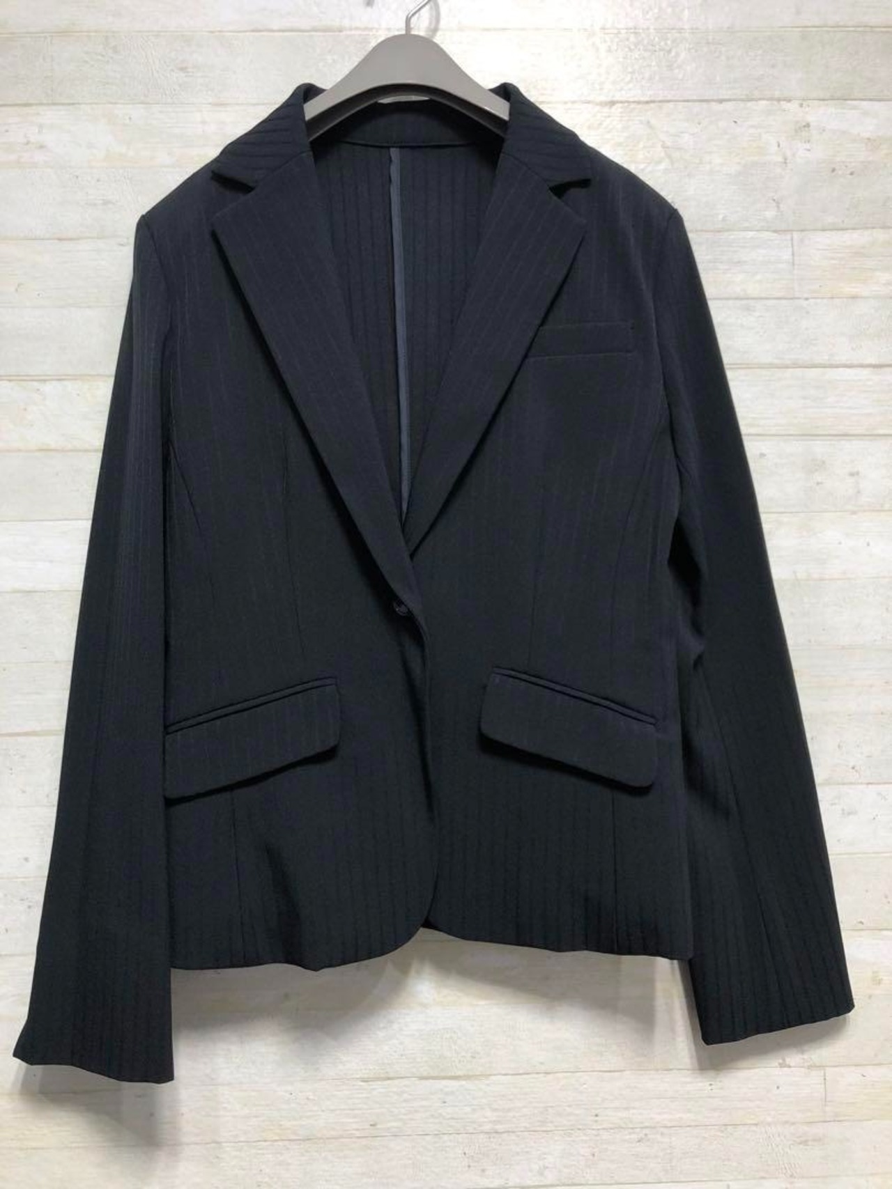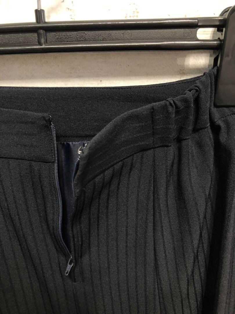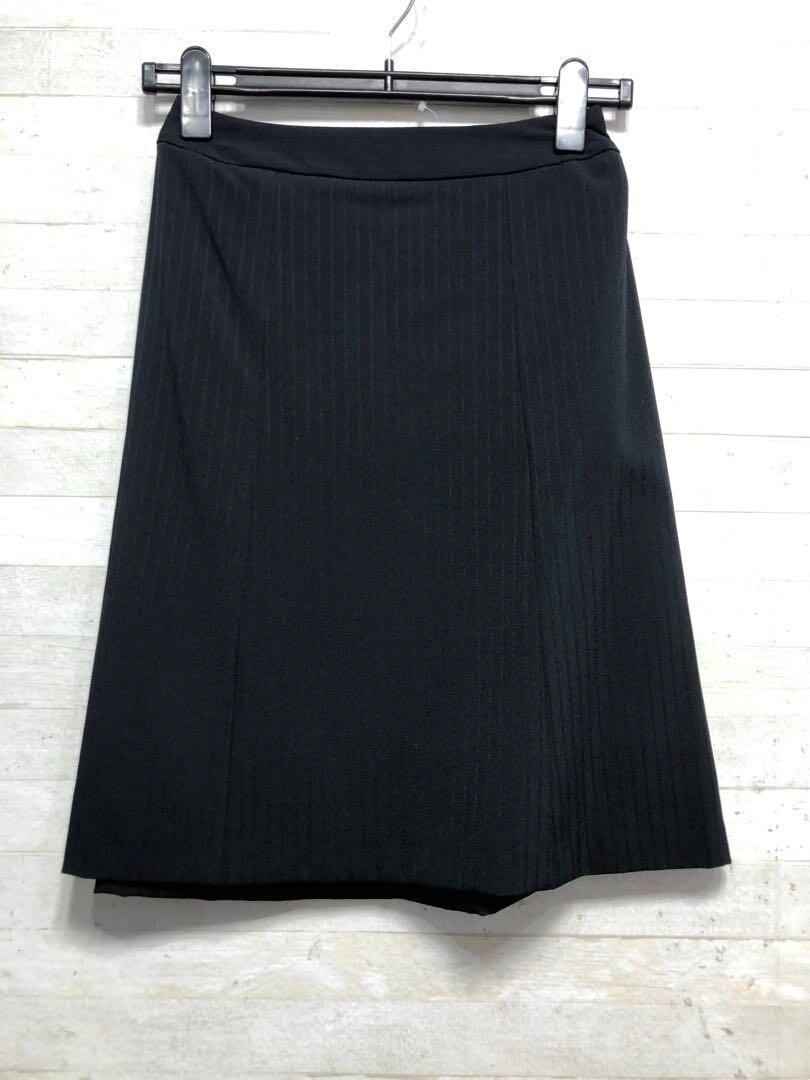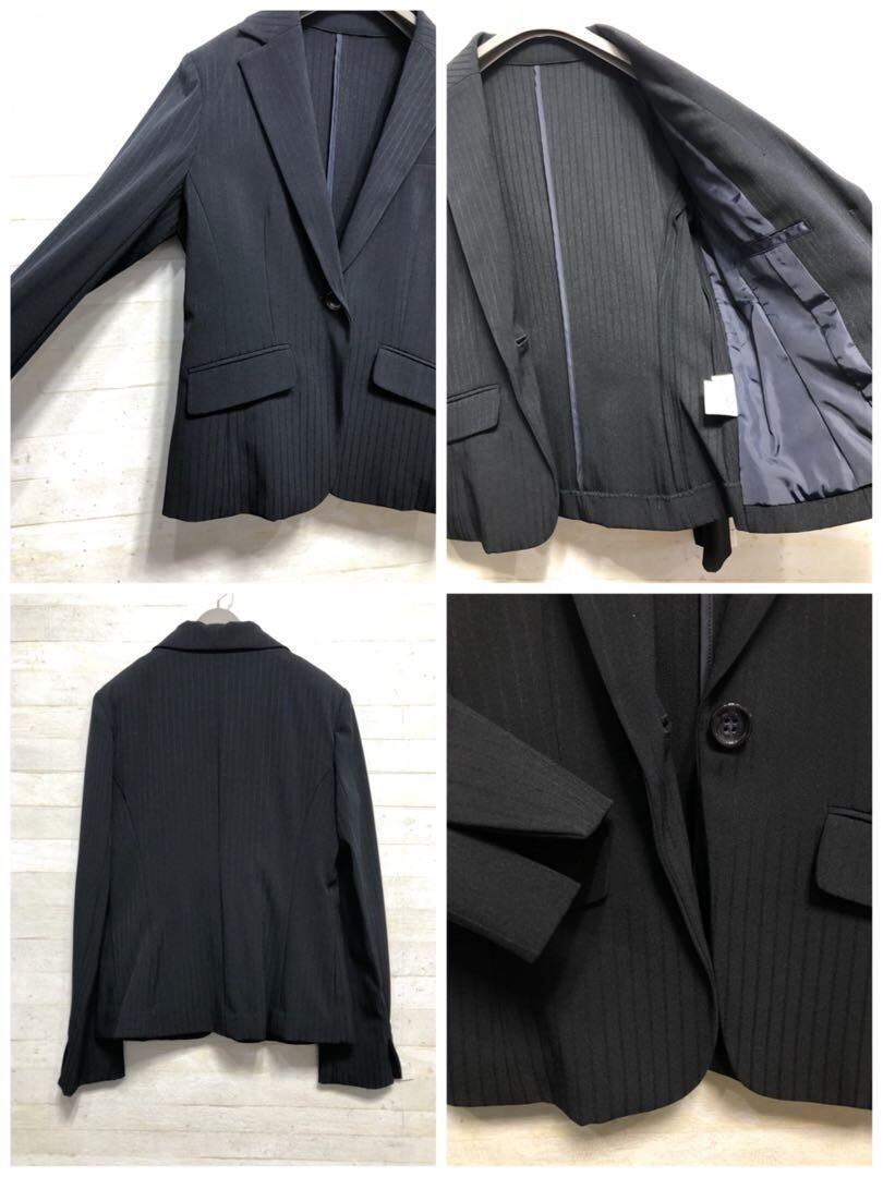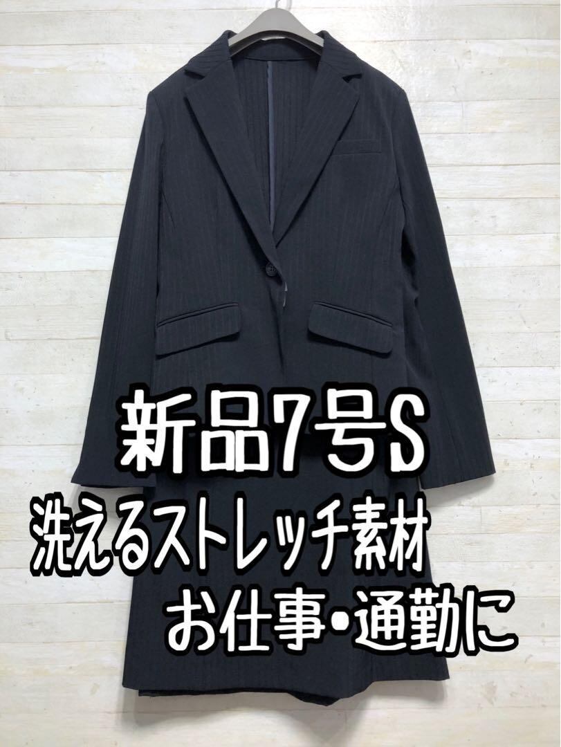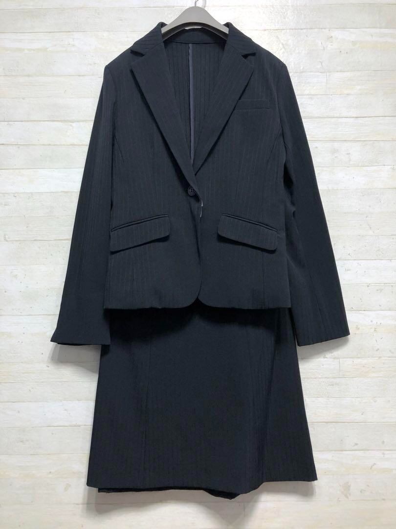 新品☆7号♪紺系×ストライプ柄スカートスーツ高機能ストレッチ防汚〇G154
