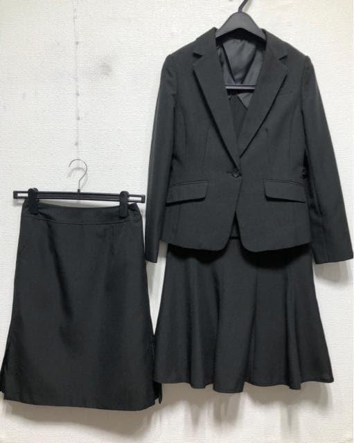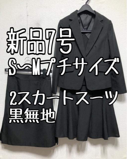 新品☆7号S~Mプチ♪黒系無地♪2種スカート付スーツ♪タイト&フレア☆u853