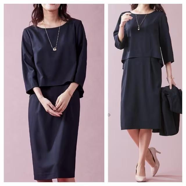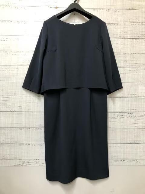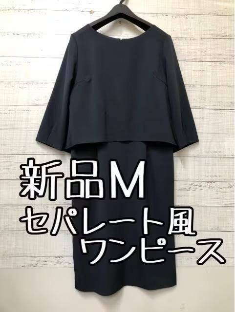 新品☆M♪紺系♪多機能さらっと素材セパレート風ワンピース♪きれいめ☆s509