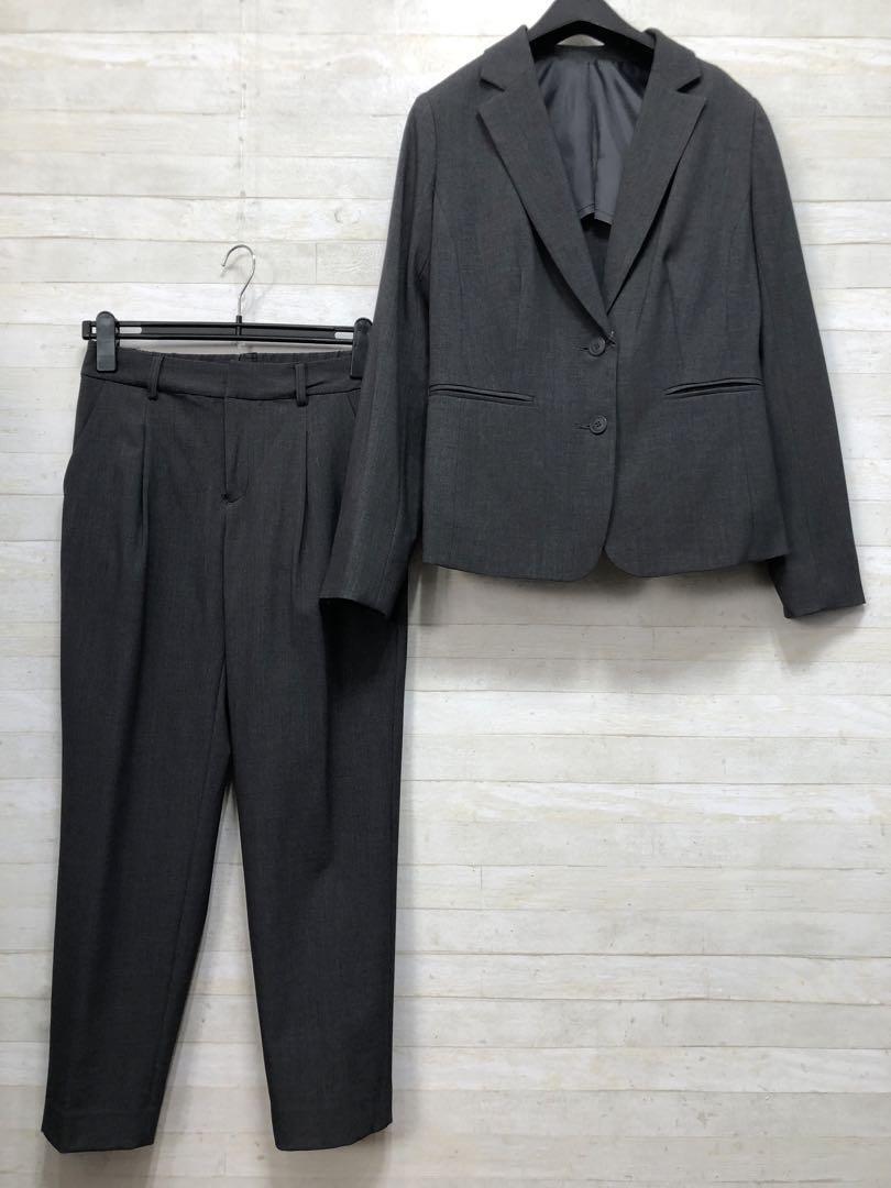 新品☆Mグラマーサイズ♪グレー系パンツスーツ♪お仕事・通勤◯D354
