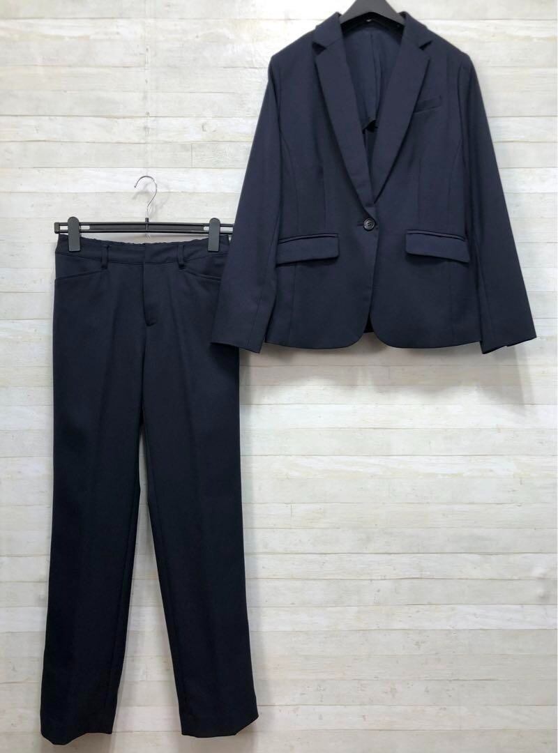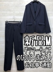 新品☆Mグラマーサイズ♪紺系♪ストレッチ素材パンツスーツ◯D355