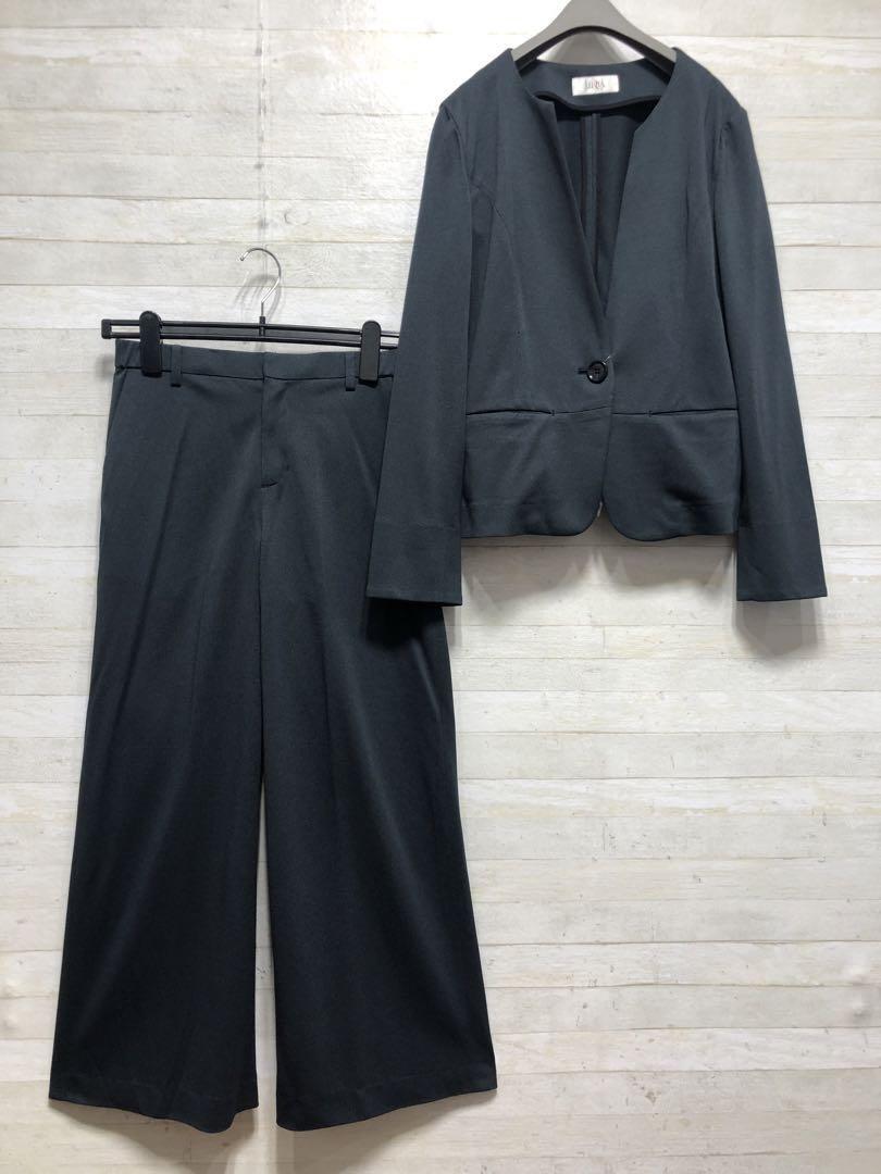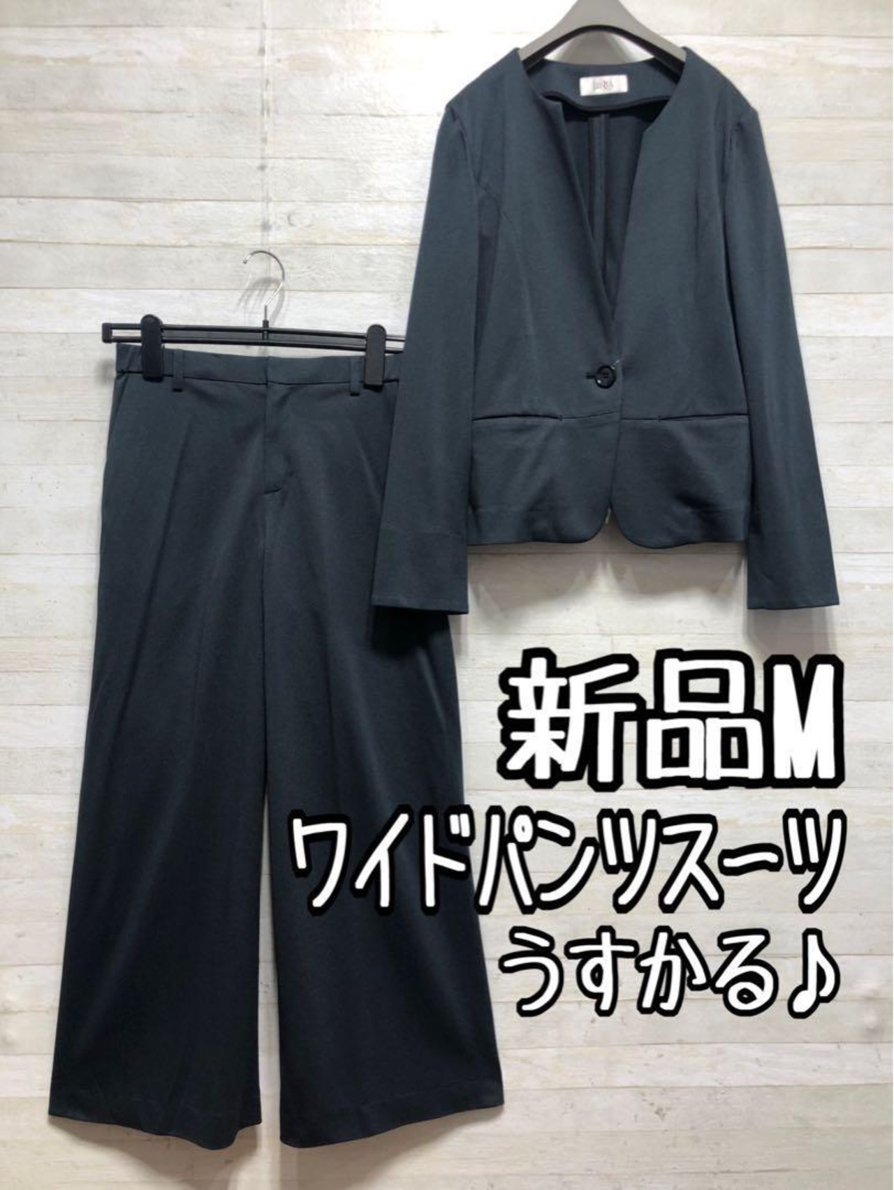 新品☆M紺系♪うす手サマースーツ♪ワイドパンツ♪お仕事・通勤◯G307