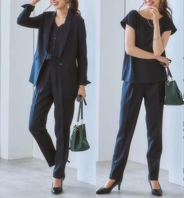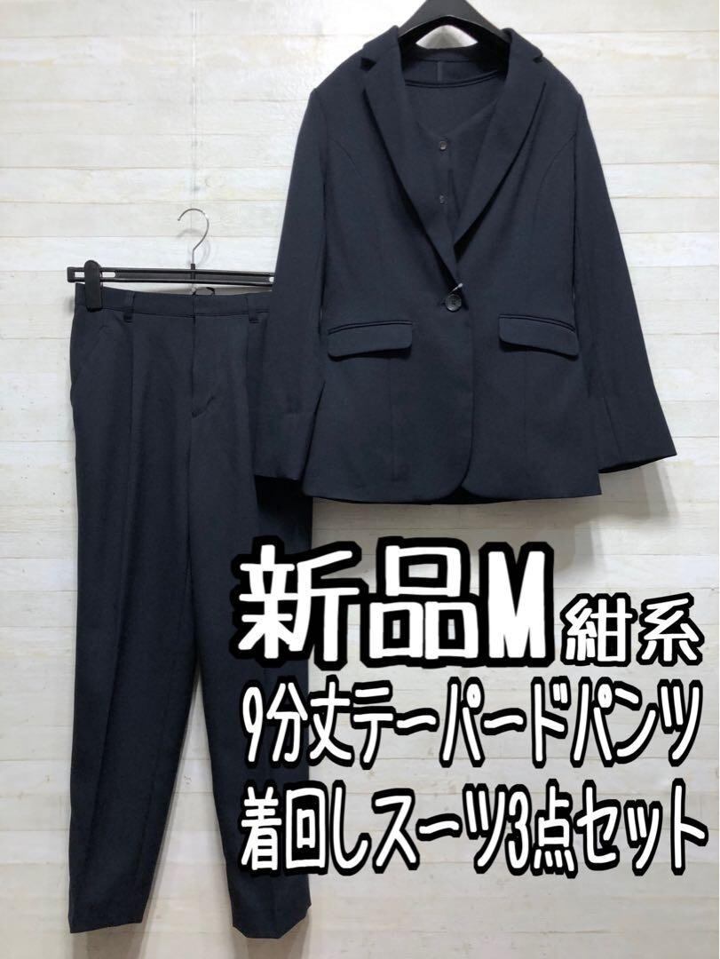 新品☆M紺系♪着回し3点♪テーパードパンツスーツお仕事・フォーマル◯G121