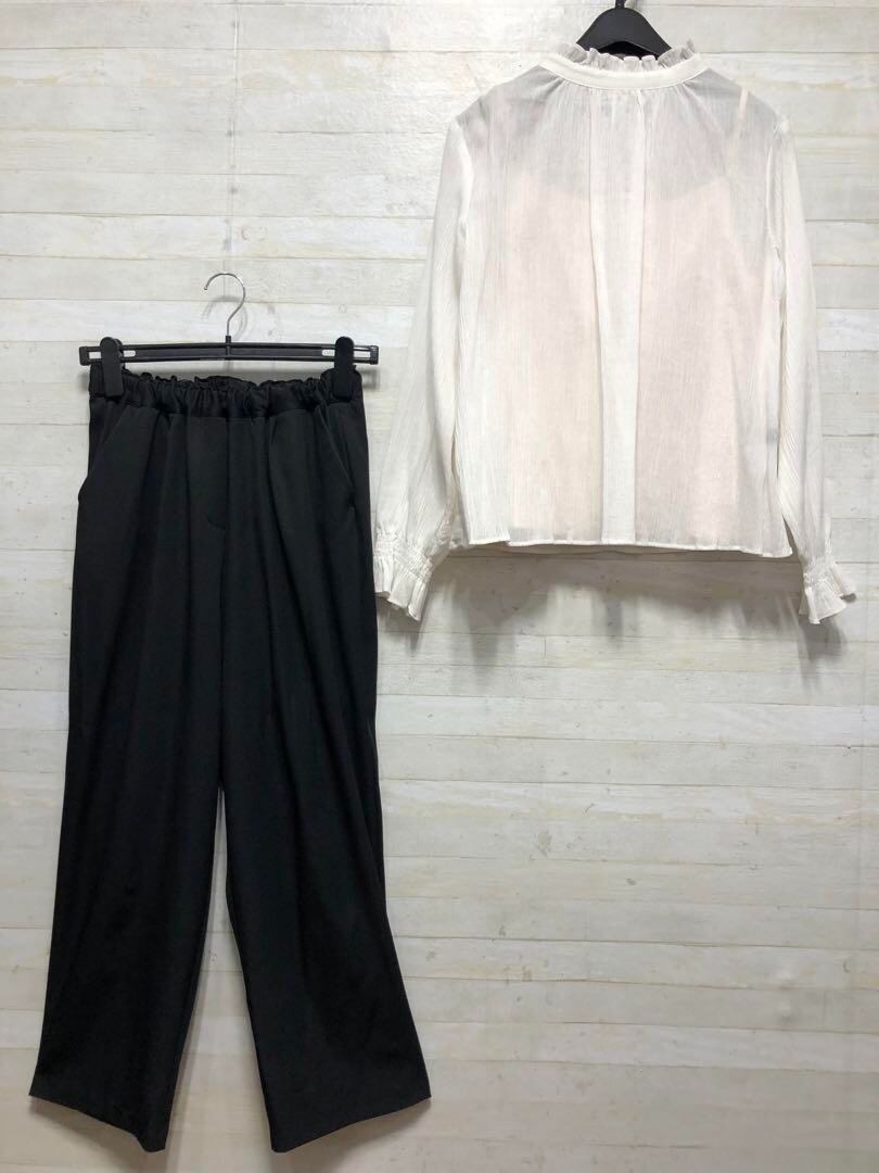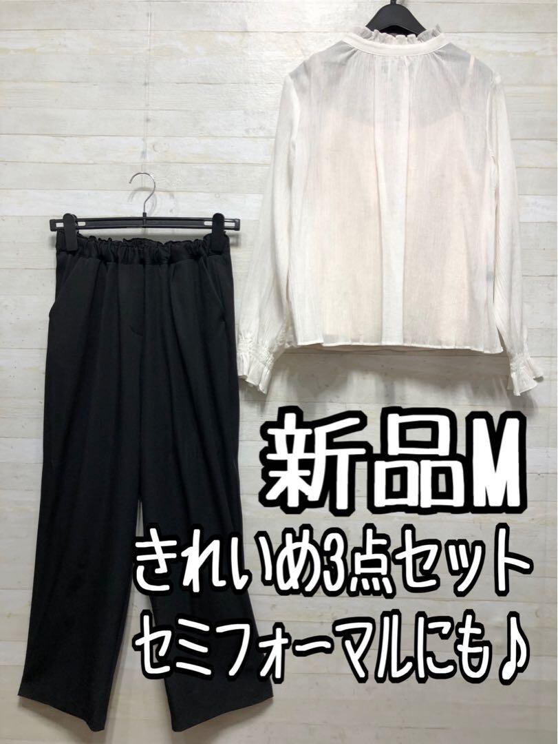 新品☆M透け感トップス&インナー&パンツ♪3点セットお出かけ・きれいめ◯D263