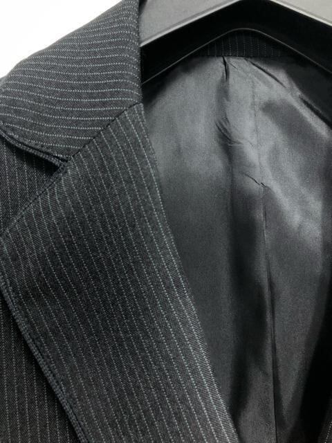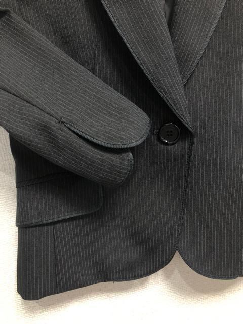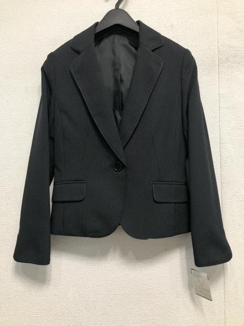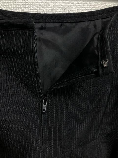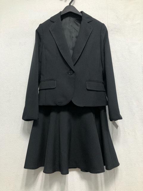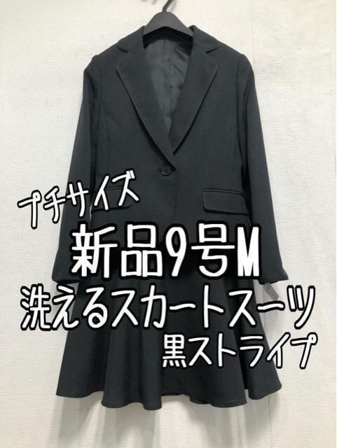 新品☆9号Mプチ黒系ストライプ柄♪フレアスカートスーツ♪洗える☆b671