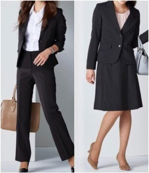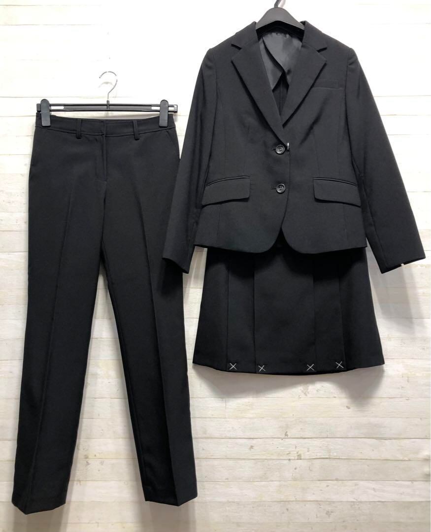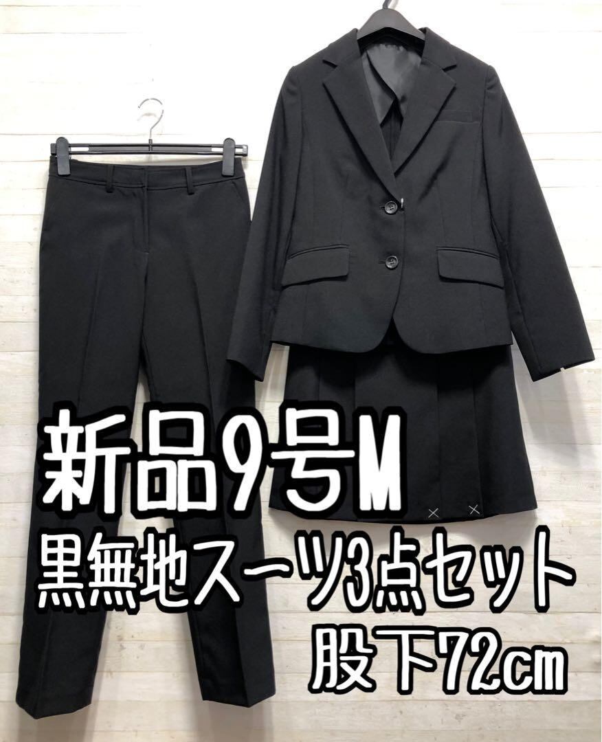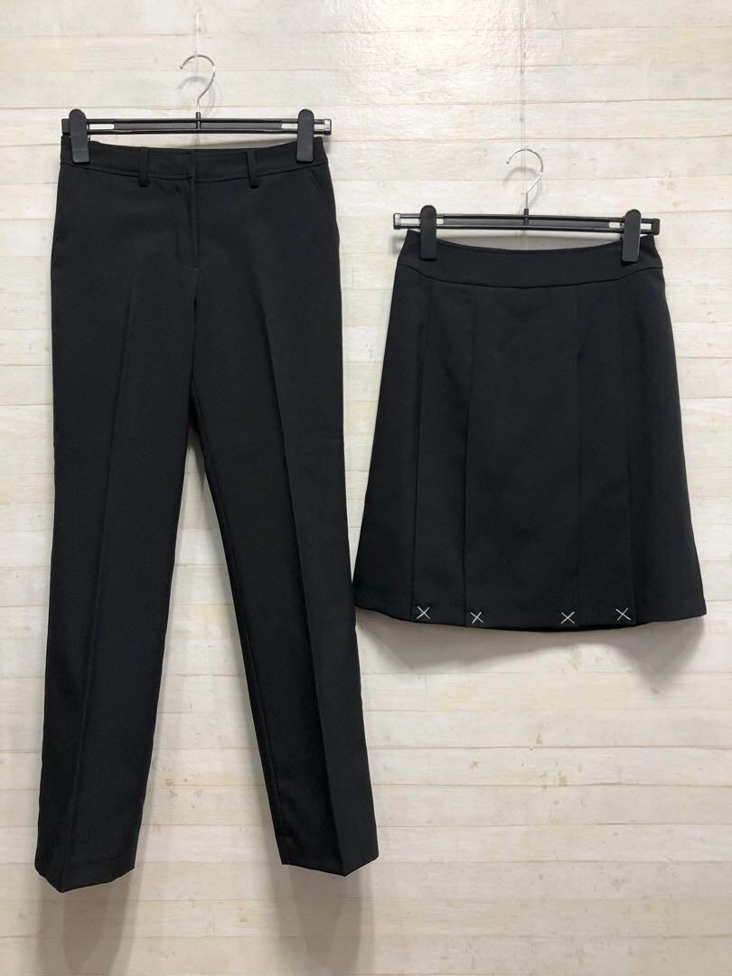新品☆9号M♪黒系無地♪パンツ&スカートスーツセット♪洗える◯D320