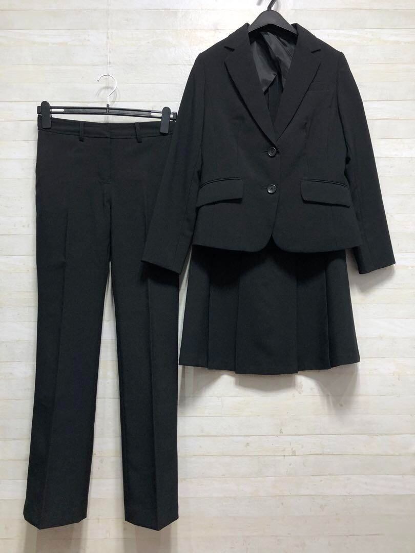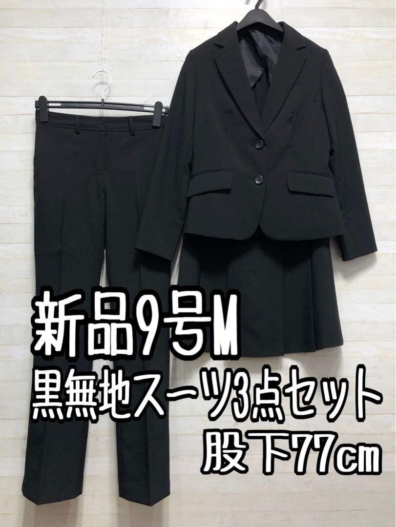 新品☆9号♪黒系無地♪パンツ&スカートスーツセット♪オールシーズン〇D321