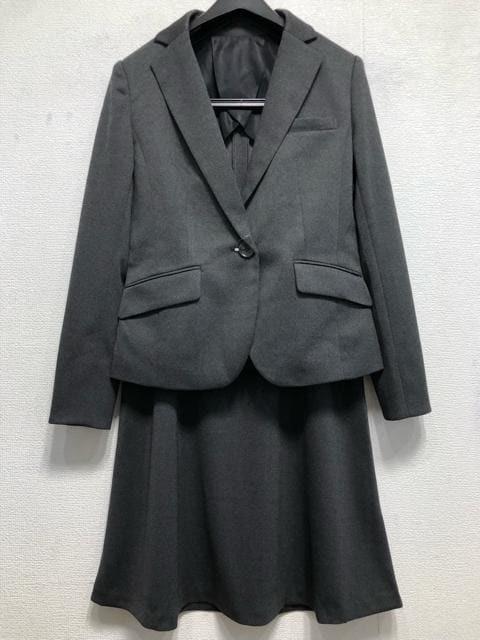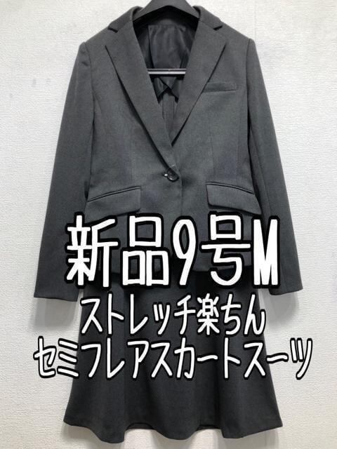 新品☆9号M♪グレー系♪ストレッチ楽ちんスカートスーツ上下セット☆u865