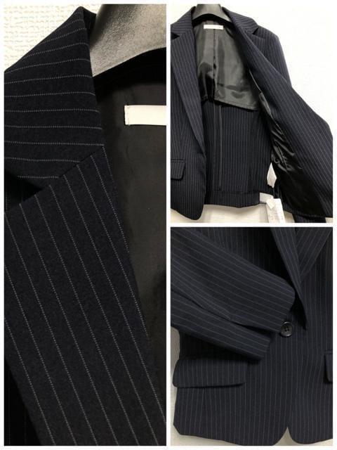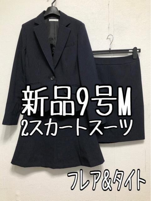 新品☆9号M紺系ストライプ♪2種スカートスーツ♪お仕事オフィス☆u868