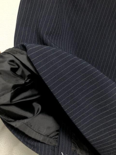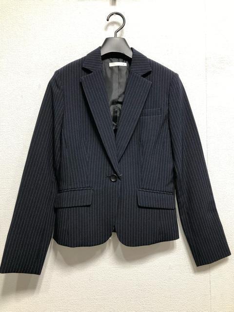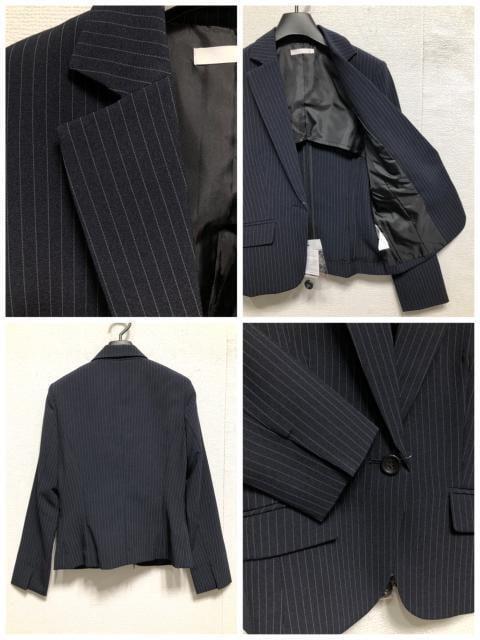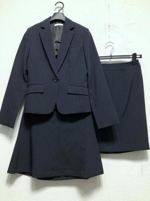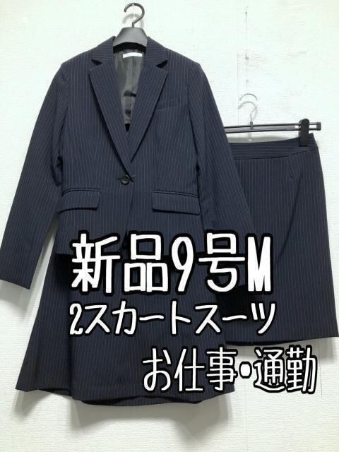 新品☆9号M♪紺系ストライプ♪スカート2種付スーツ3点セット♪オフィス☆r288