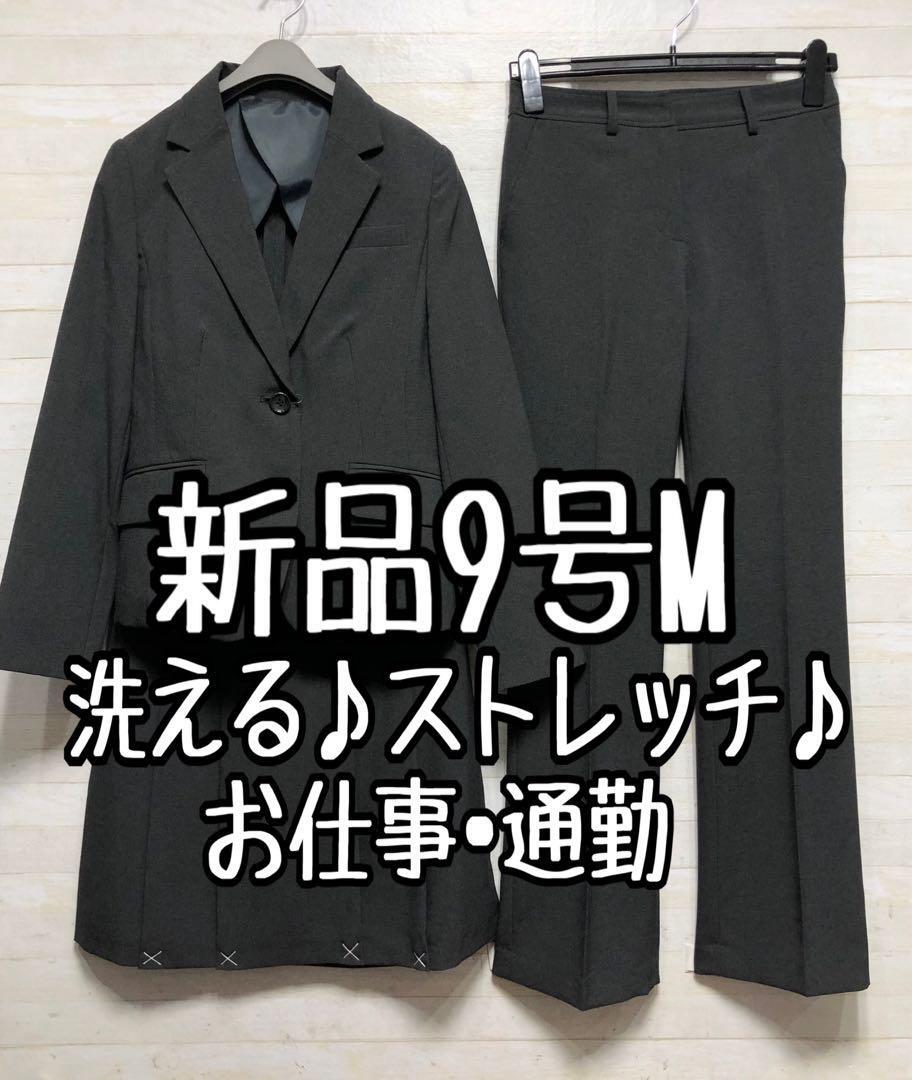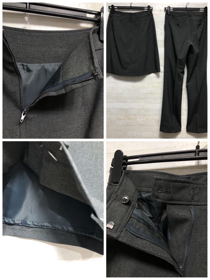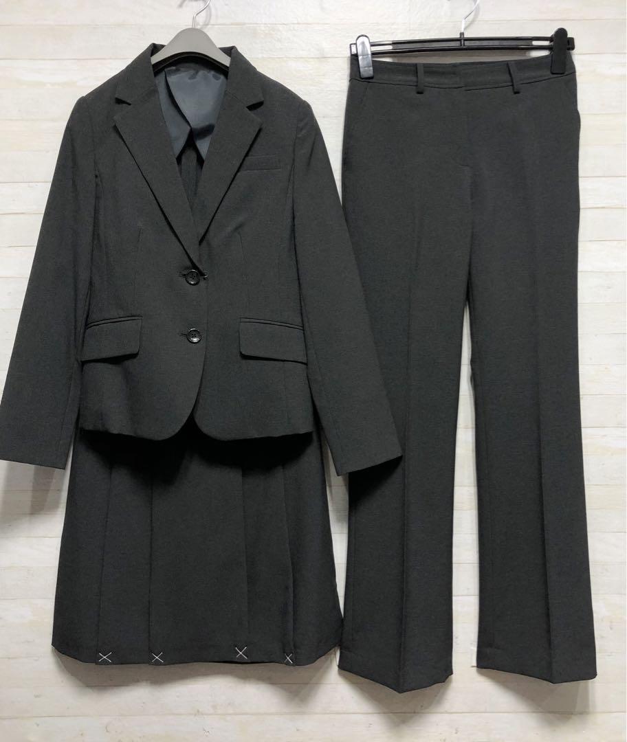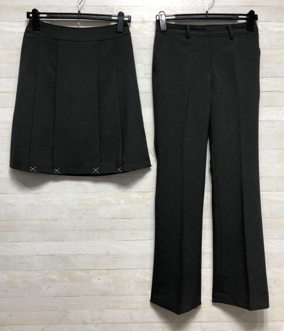 新品☆9号M♪グレー系♪プリーツスカート&脚長見えパンツスーツ♪お仕事〇D559