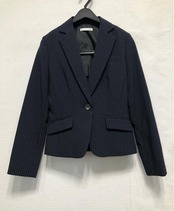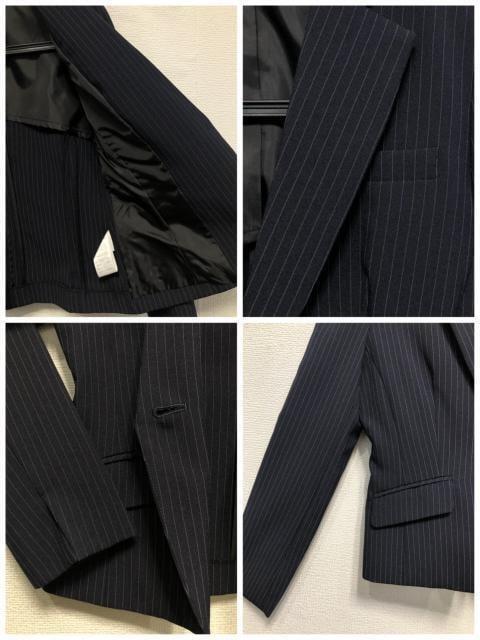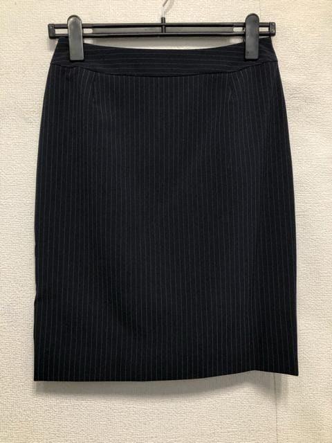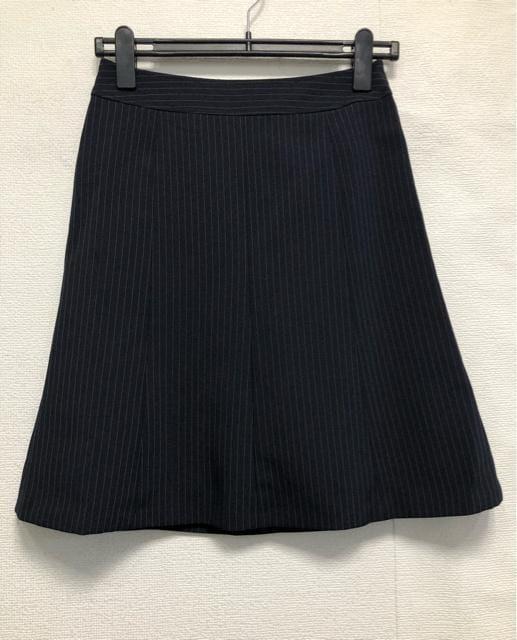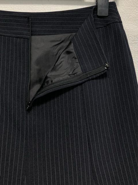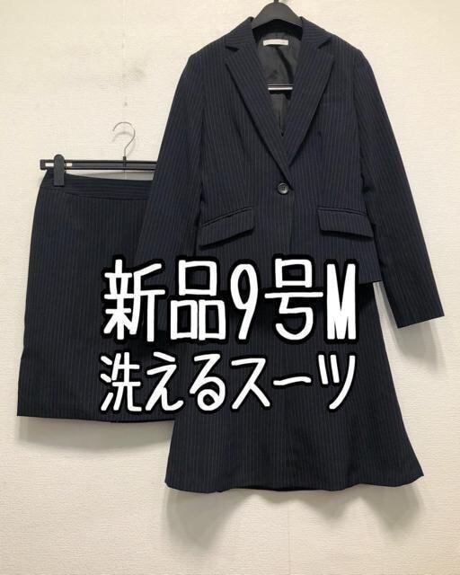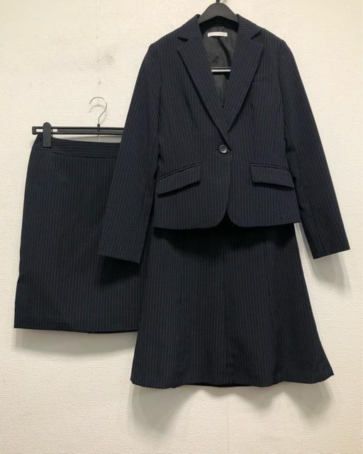 新品☆9号M紺系ストライプ♪フレア&タイトスカートスーツ♪お仕事☆r310
