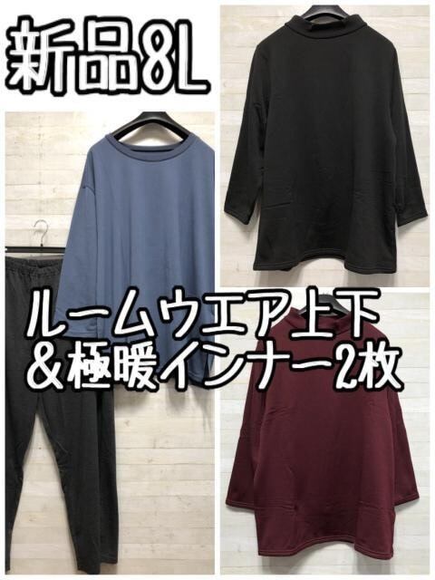 新品☆8L♪やわらかルームウエア上下セット&極暖インナー2枚♪わけありも〇B685