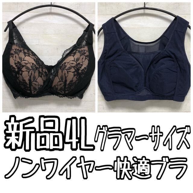 新品☆4Lグラマーサイズ♪ノンワイヤー楽ちん快適ブラ2枚セット〇B666