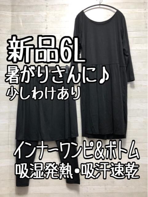 新品☆6L黒系♪暑がりさん用♪インナーワンピ&スカート一体型レギンス☆B672