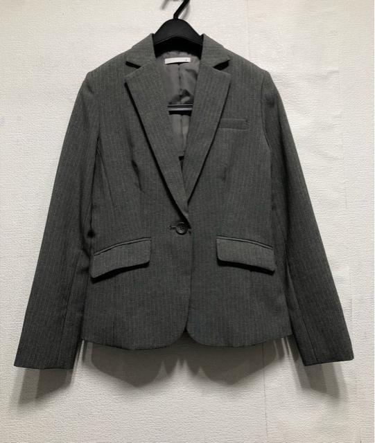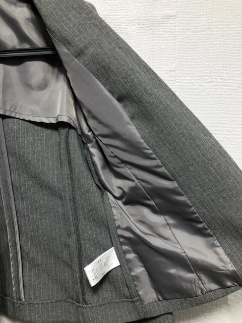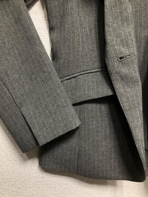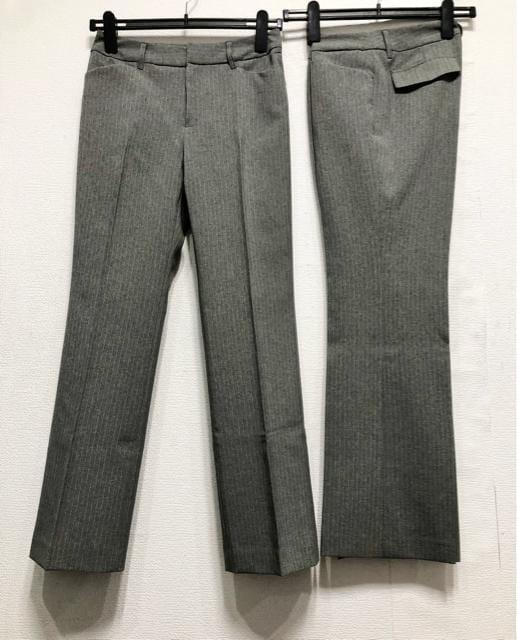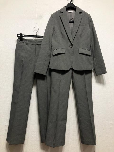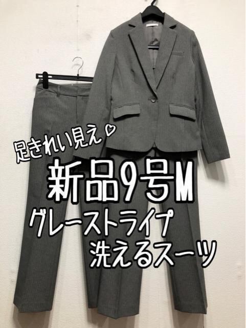 新品☆9号M♪グレー系ストライプ♪洗える2パンツスーツ♪脚きれい見え☆r330