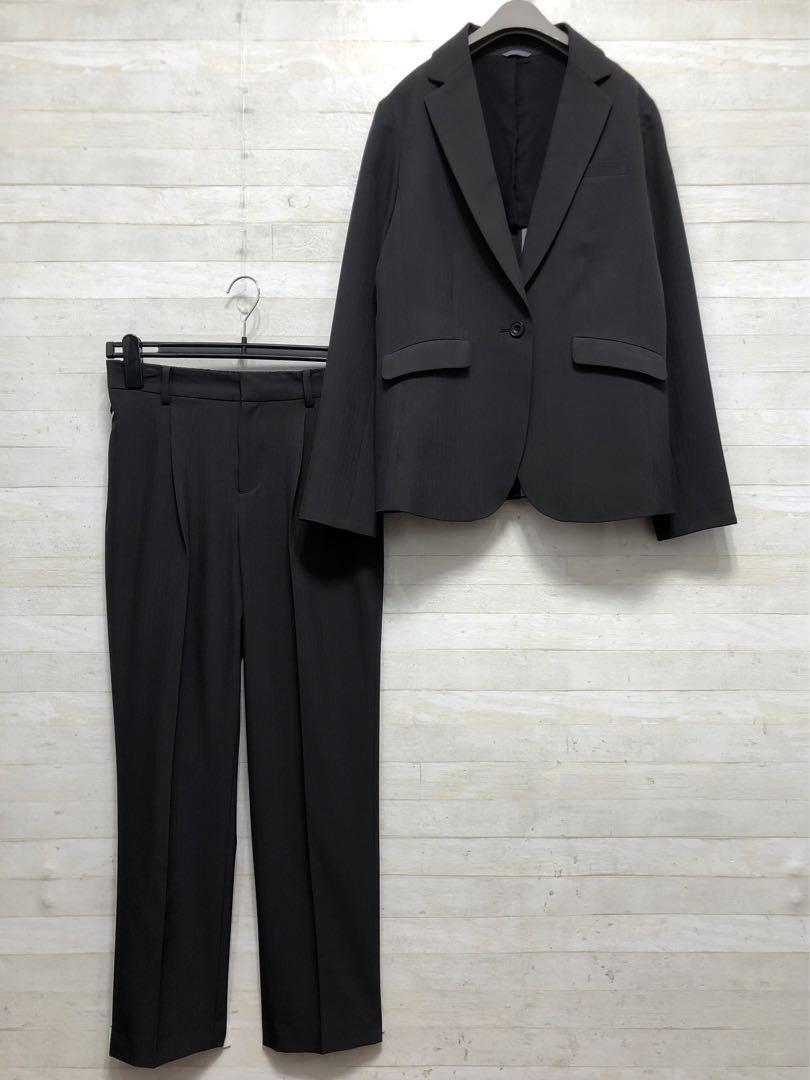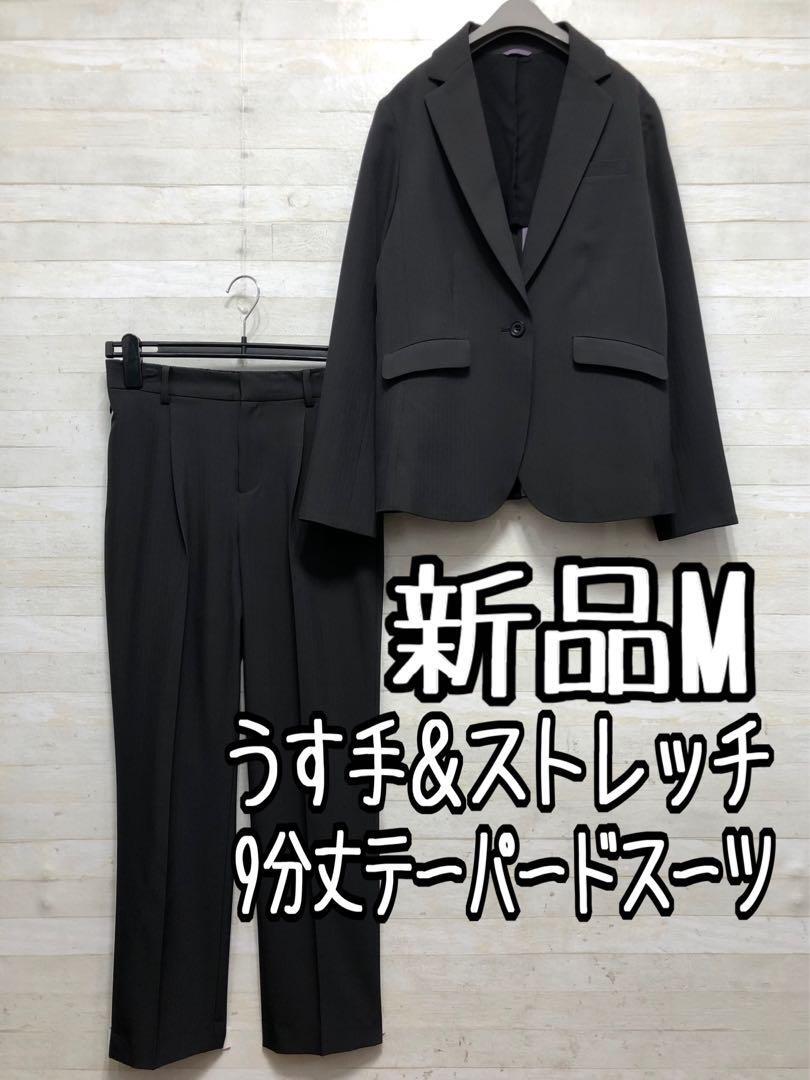 新品☆Mグレー系♪うす手ストレッチ素材パンツスーツ・テーパード〇G418