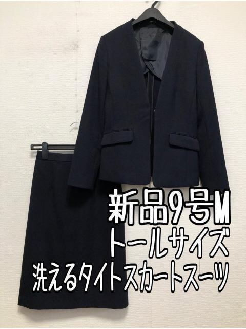 新品☆9号Mトール♪紺系無地♪タイトスカートスーツ♪お仕事・通勤☆r676