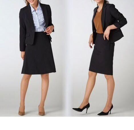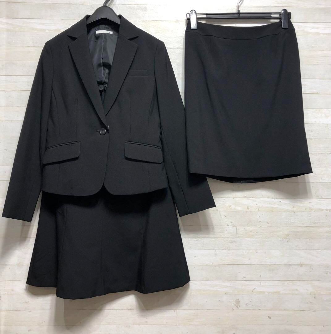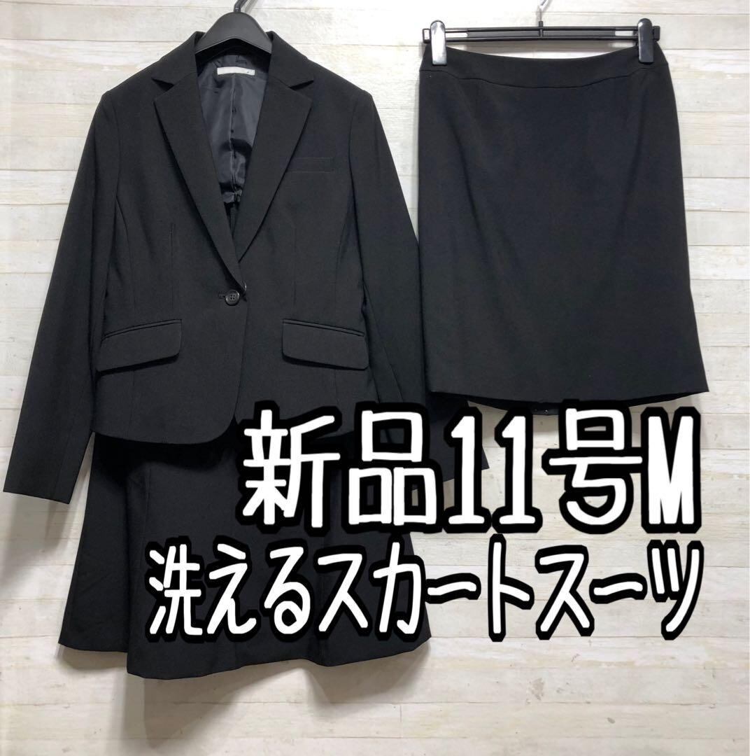 新品☆11号M黒系無地ベーシックスカートスーツセット♪スカート2種類付〇D331