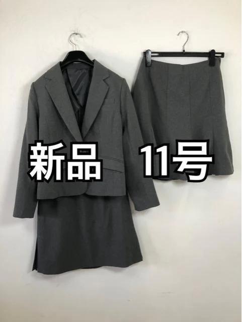 新品☆11号♪グレー系♪洗える!2種スカート付きスーツ♪☆j303