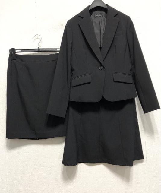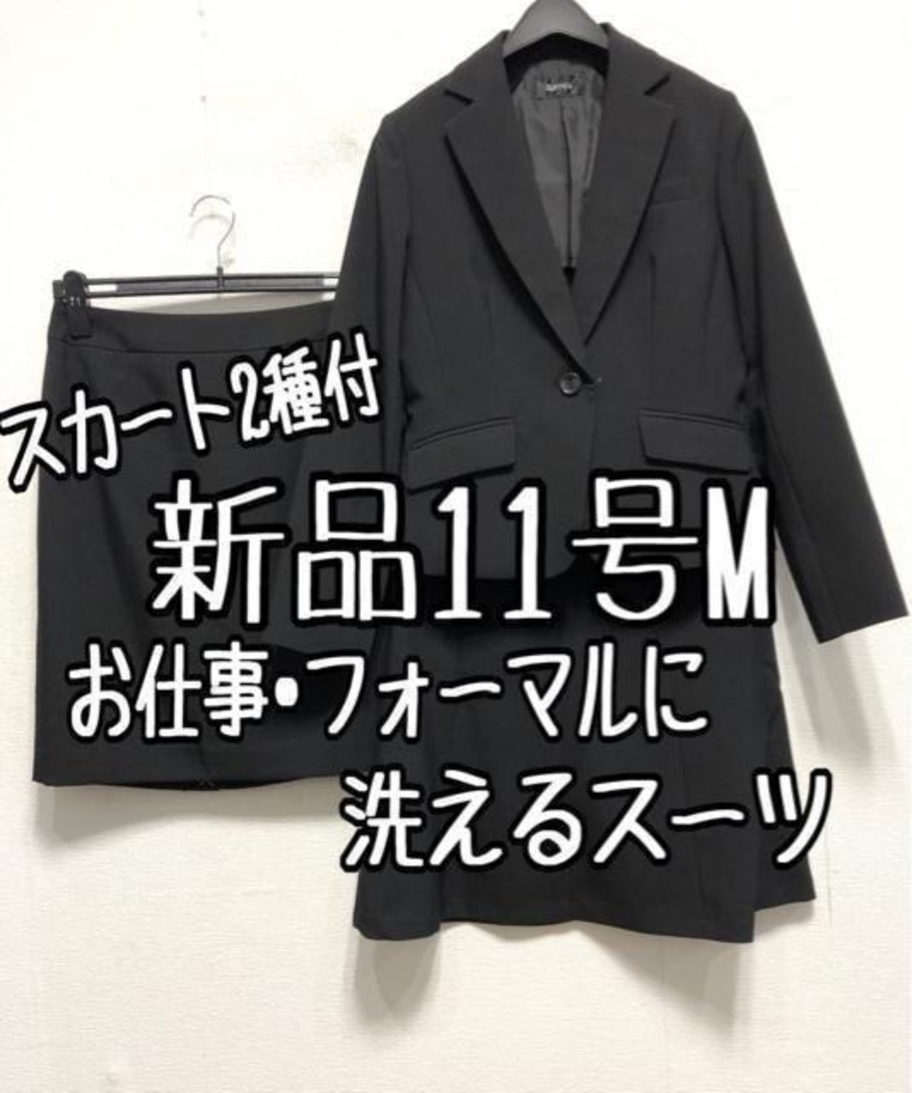 新品☆11号M黒系無地♪タイト&フレアスカートスーツ♪お仕事・通勤☆a252