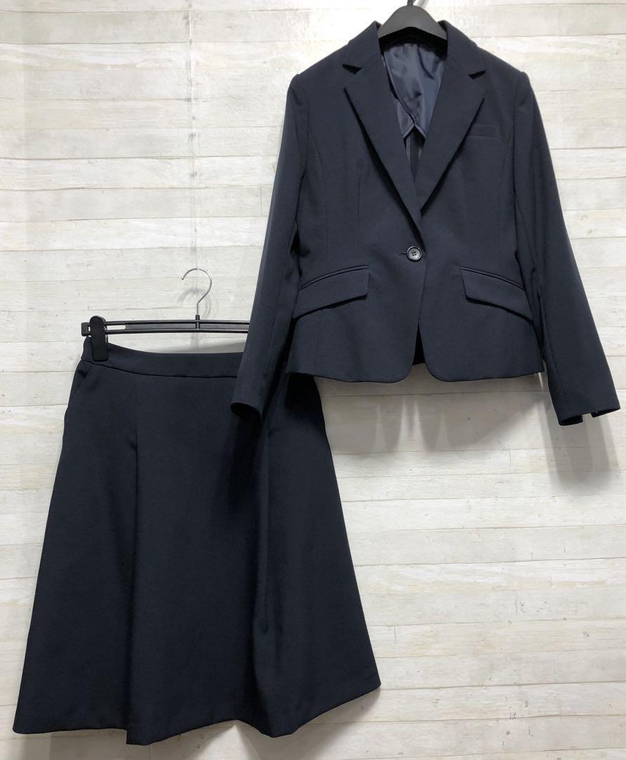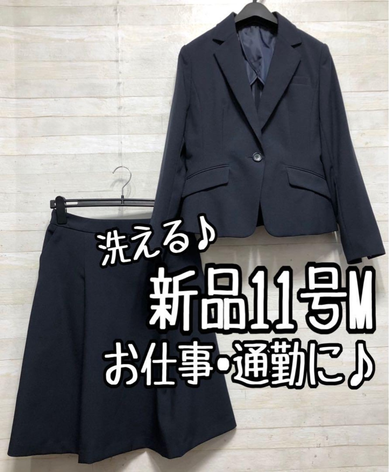 新品☆11号M♪紺系♪タックフレアスカートスーツ♪お仕事にも♪洗える〇〇D576